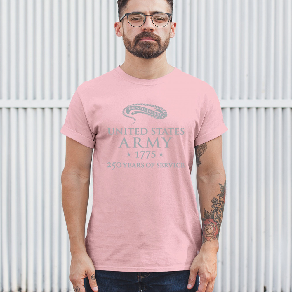 Celebrate 250 years of Army heritage with this powerful design showcasing the “This We’ll Defend†motto and 1775 founding date. Perfect for military veterans, soldiers, and patriotic Americans, it honors armed forces pride, freedom, and America’s legacy of service. A great value for anyone passionate about Army apparel and DD214 pride.