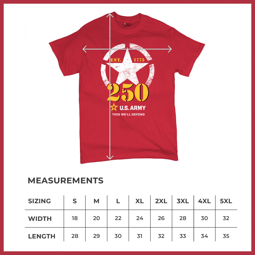 Boldly marking the U.S. Army’s 250th anniversary, this design includes a distressed white star, 1775 EST detail, and bold yellow “250†typeface beneath the iconic motto “This We’ll Defend.†A fitting tribute for veterans, service members, and families who want to show respect and pride during military observances or patriotic events.