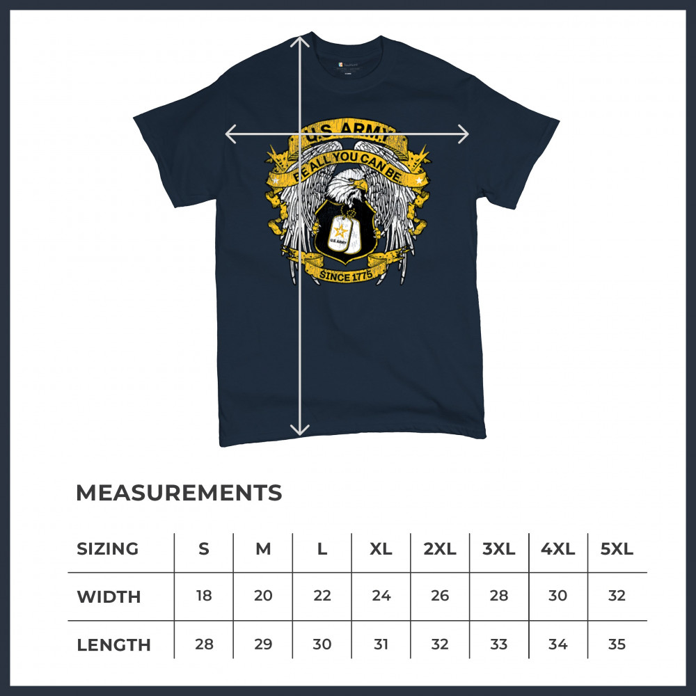 This bold U.S. Army design embodies the steadfast pride and enduring spirit of our armed services. Inspired by the bravery and sacrifice that have defined soldiers throughout history, it's a statement piece for anyone committed to the values of duty and resilience. Perfect for veterans and service members alike, it’s a way to showcase your support for the enduring American legacy of freedom and the honor of the military life.