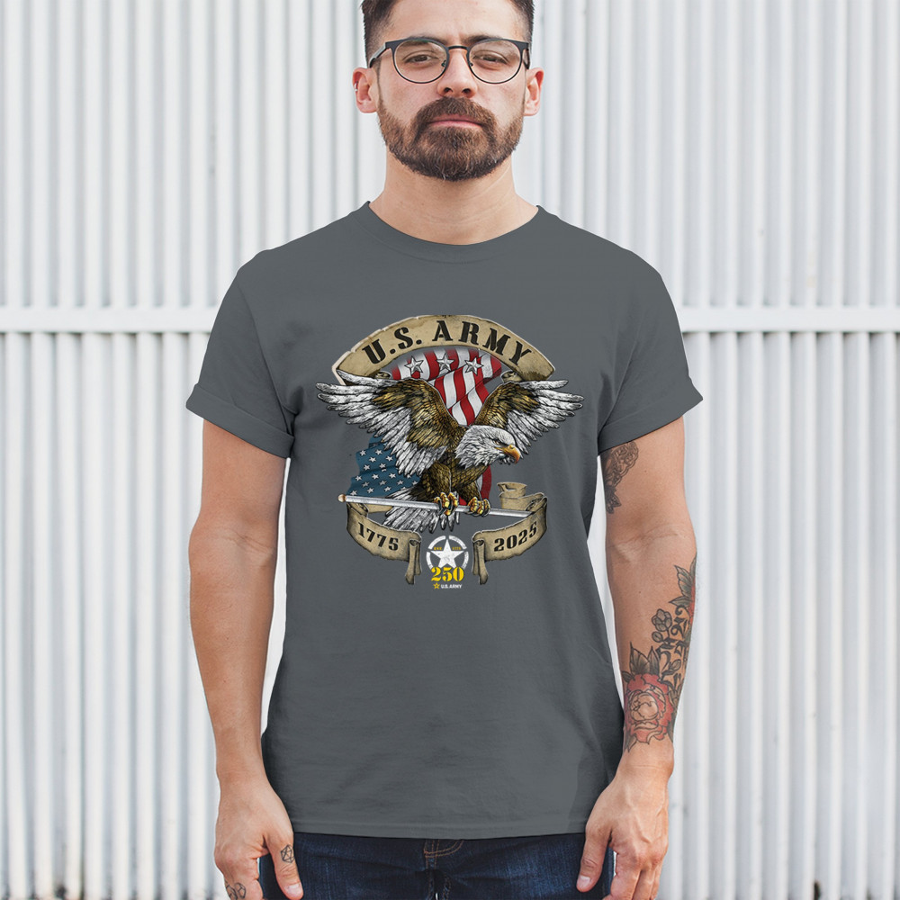 Celebrate the U.S. Army’s 250th Anniversary with patriotic eagle art, Army apparel, Veterans Day pride, and American freedom tribute.