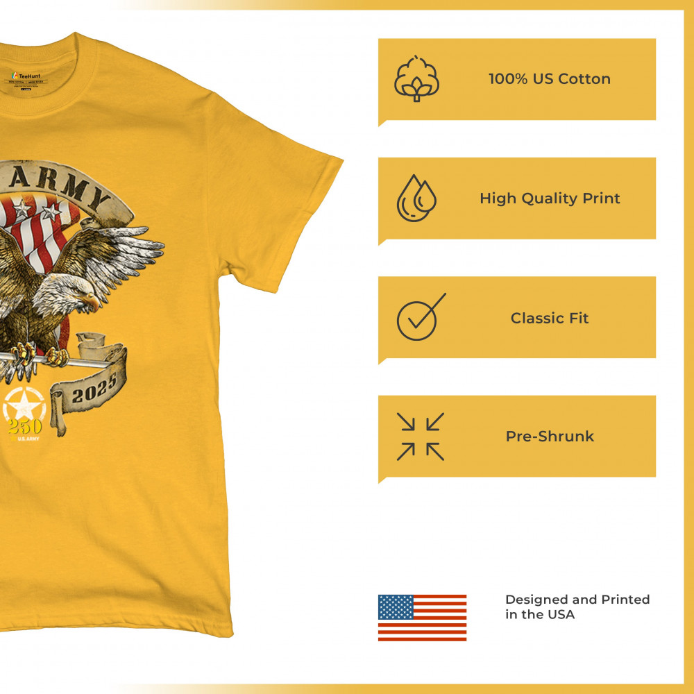 Celebrate the U.S. Army’s 250th Anniversary with patriotic eagle art, Army apparel, Veterans Day pride, and American freedom tribute.