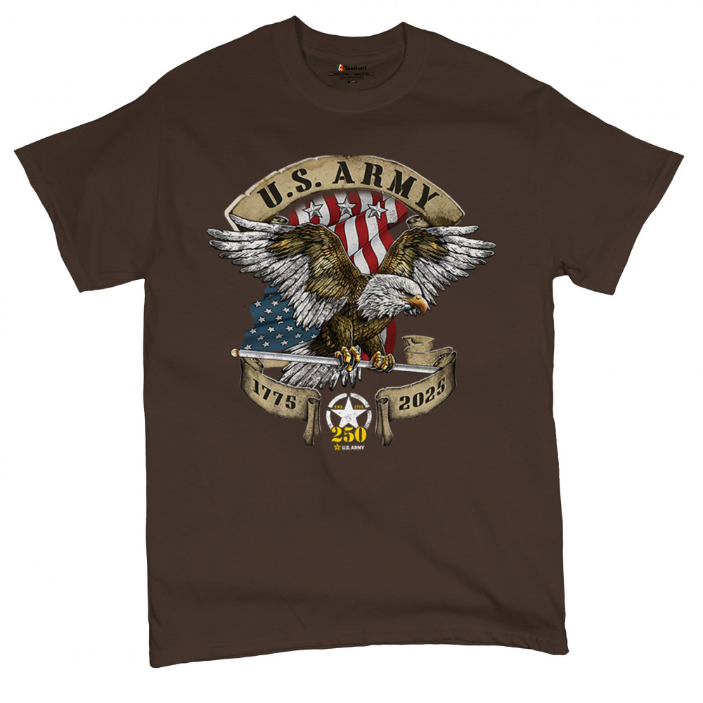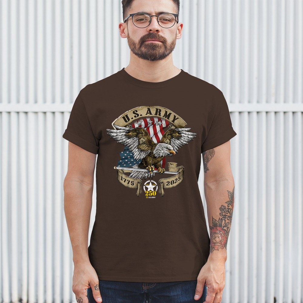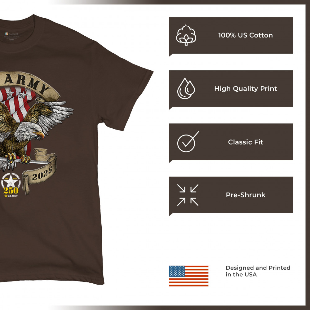 Celebrate the U.S. Army’s 250th Anniversary with patriotic eagle art, Army apparel, Veterans Day pride, and American freedom tribute.