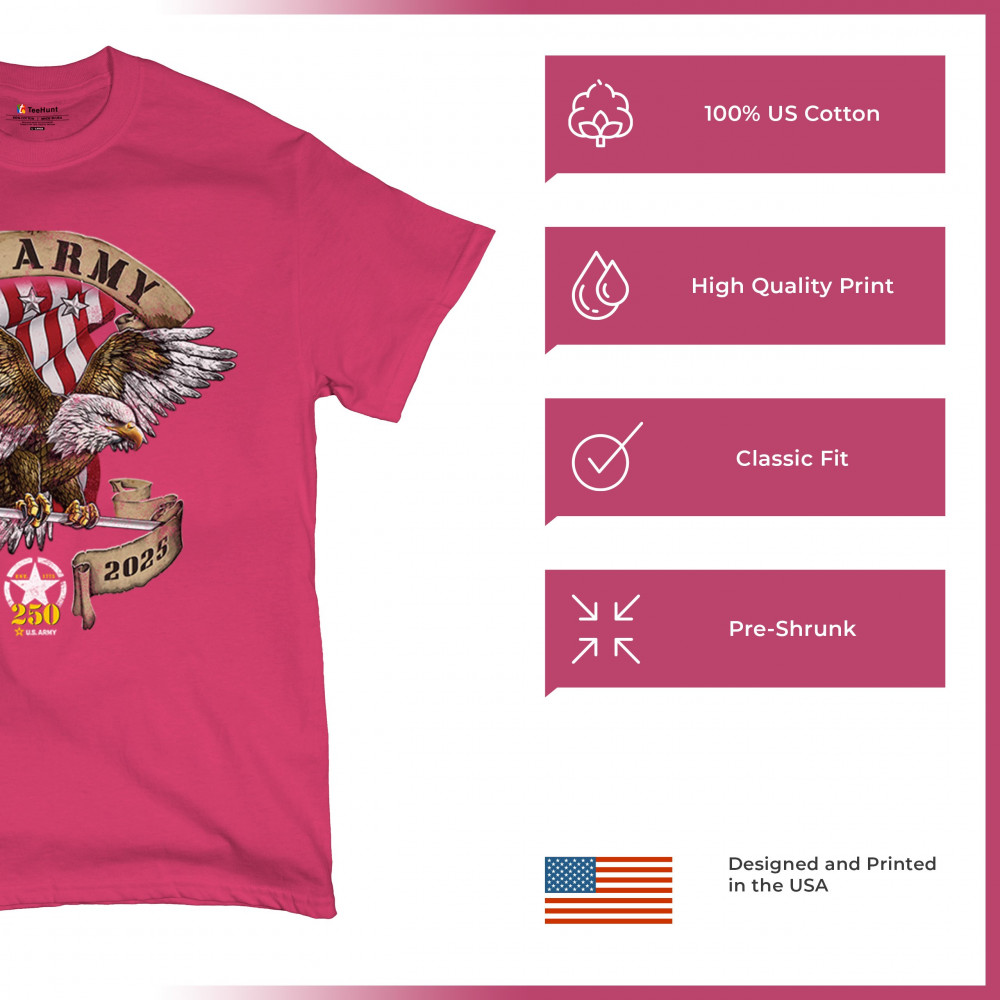 Celebrate the U.S. Army’s 250th Anniversary with patriotic eagle art, Army apparel, Veterans Day pride, and American freedom tribute.