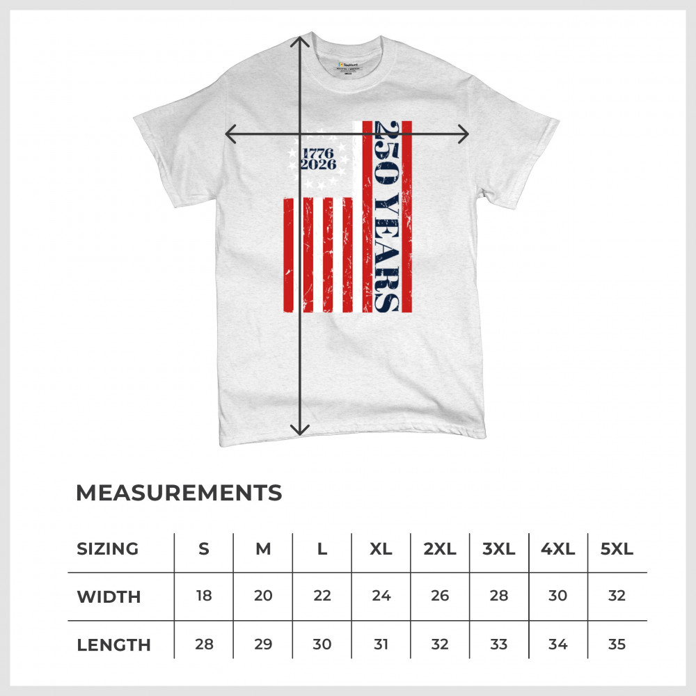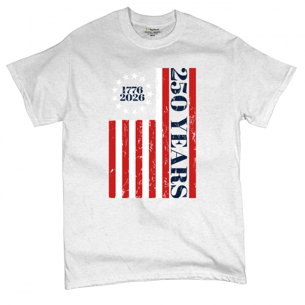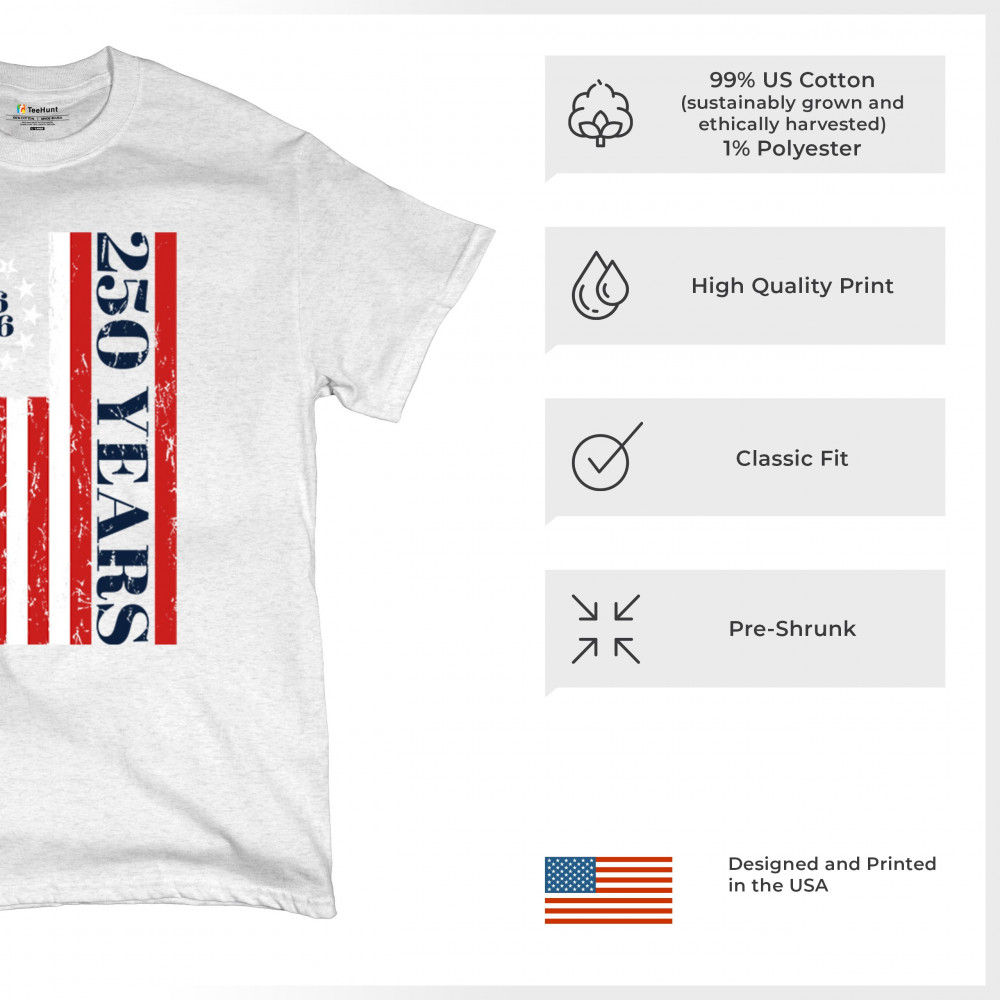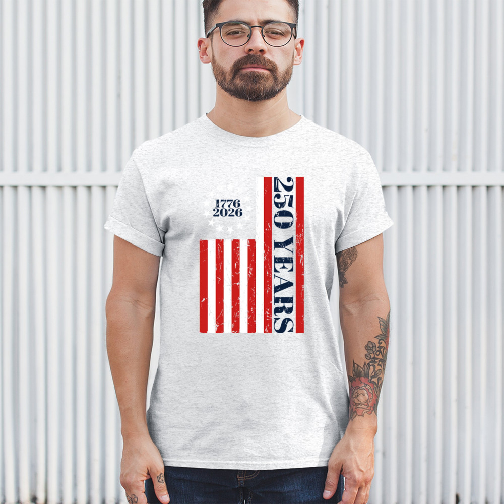 Celebrate USA 250 with patriotic flag shirt, America heritage 250, 1776–2026 milestone, American pride, and Independence Day freedom.