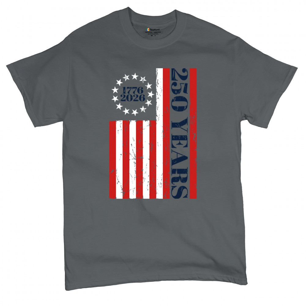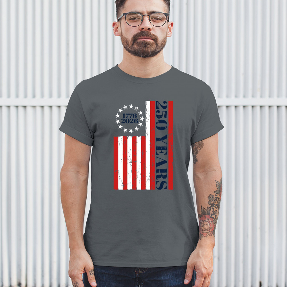 Celebrate USA 250 with patriotic flag shirt, America heritage 250, 1776–2026 milestone, American pride, and Independence Day freedom.