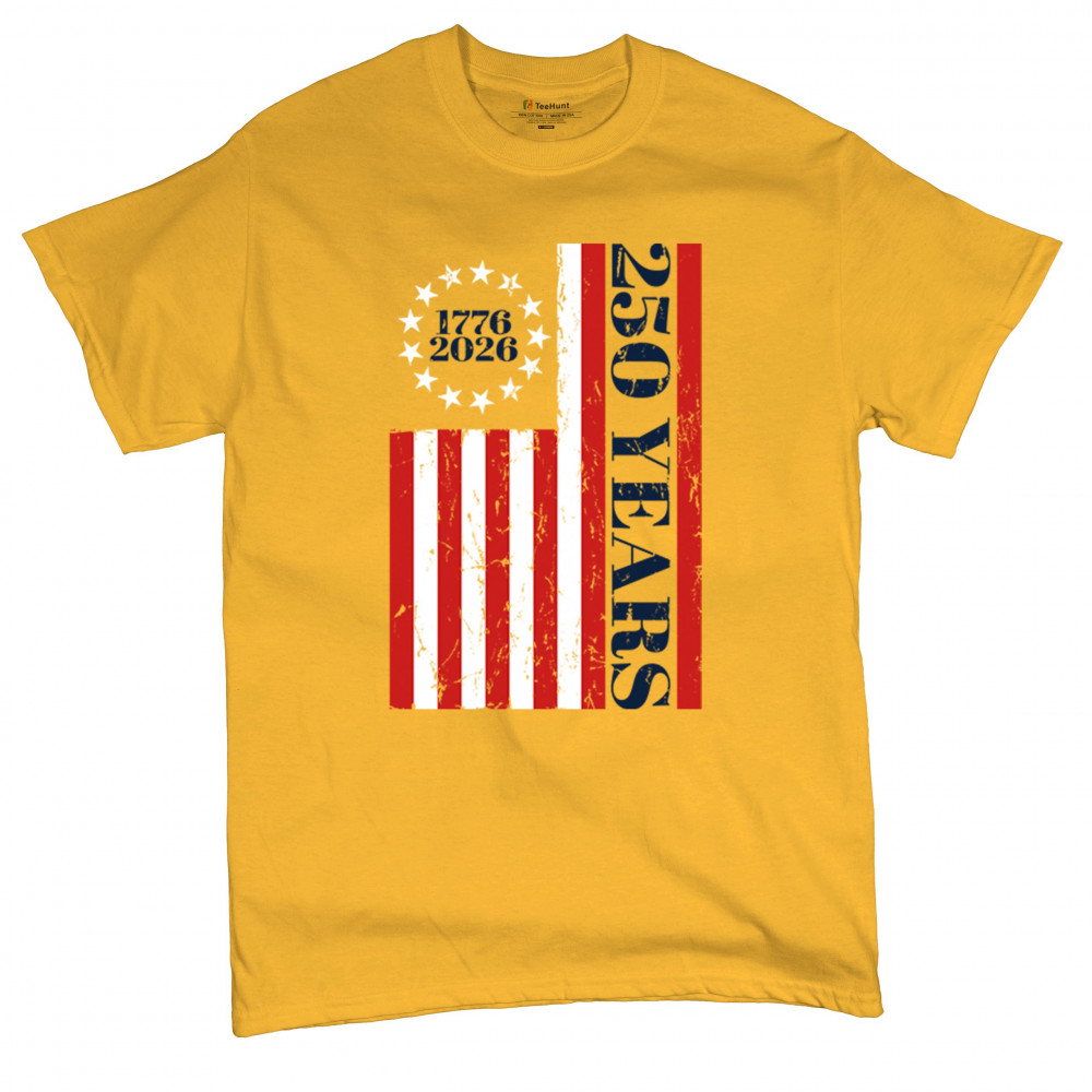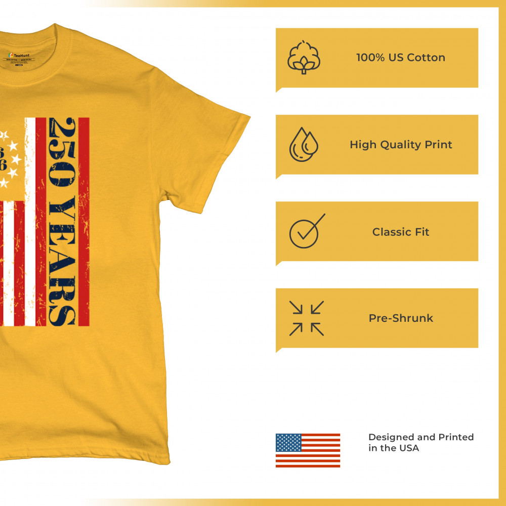 Celebrate USA 250 with patriotic flag shirt, America heritage 250, 1776–2026 milestone, American pride, and Independence Day freedom.