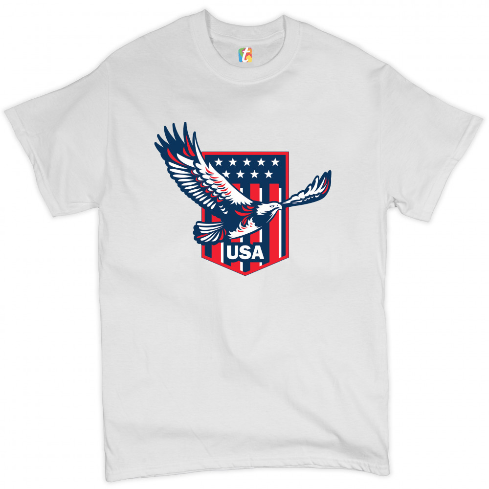 USA BALD EAGLE t-shirt stars and stripes shield 4th of july men's tee white