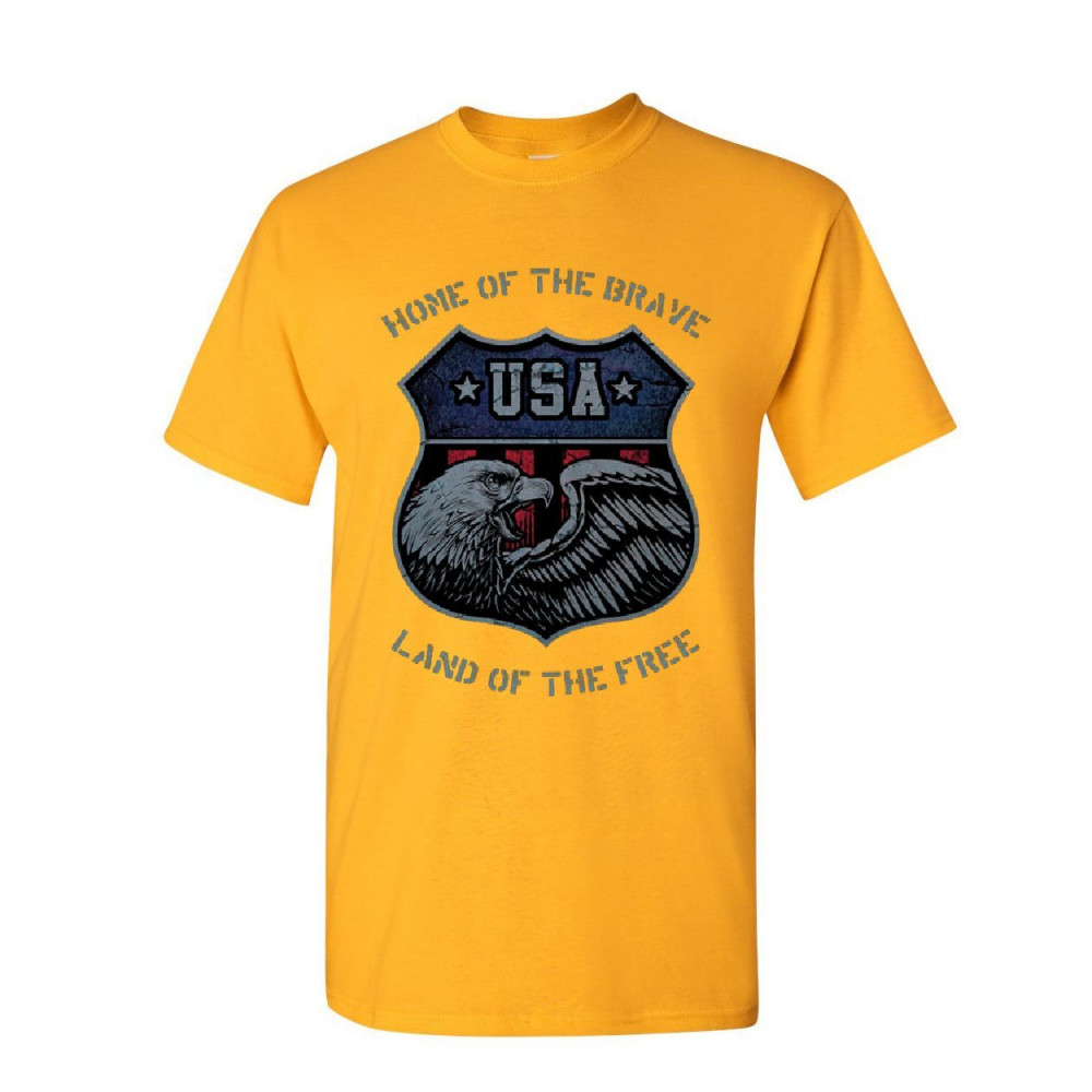USA SHIELD PATRIOTIC t-shirt home of the brave land of the free mens tee shirt yellow