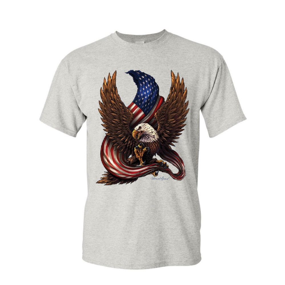 AMERICAN BALD EAGLE usa stars and stripes t-shirt patriot american pride bald eagle mens tee shirt ash gray