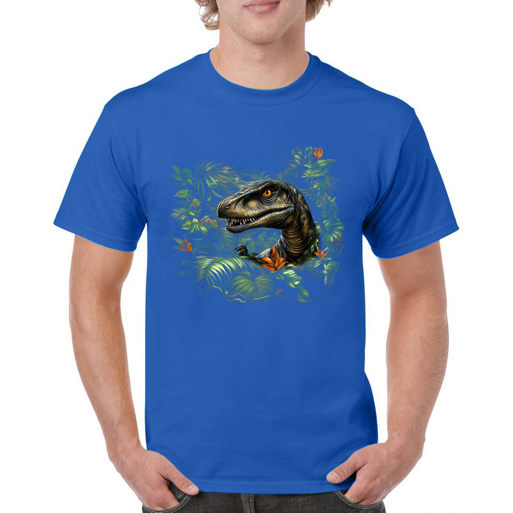 Step into the wild with this striking jungle raptor design. A highly detailed velociraptor peeks from vivid tropical foliage and flowers, perfect for dinosaur lovers, fossil fans, and ancient creature enthusiasts. Whether for Jurassic adventures, museum trips, or themed events, this design unleashes untamed prehistoric energy.
