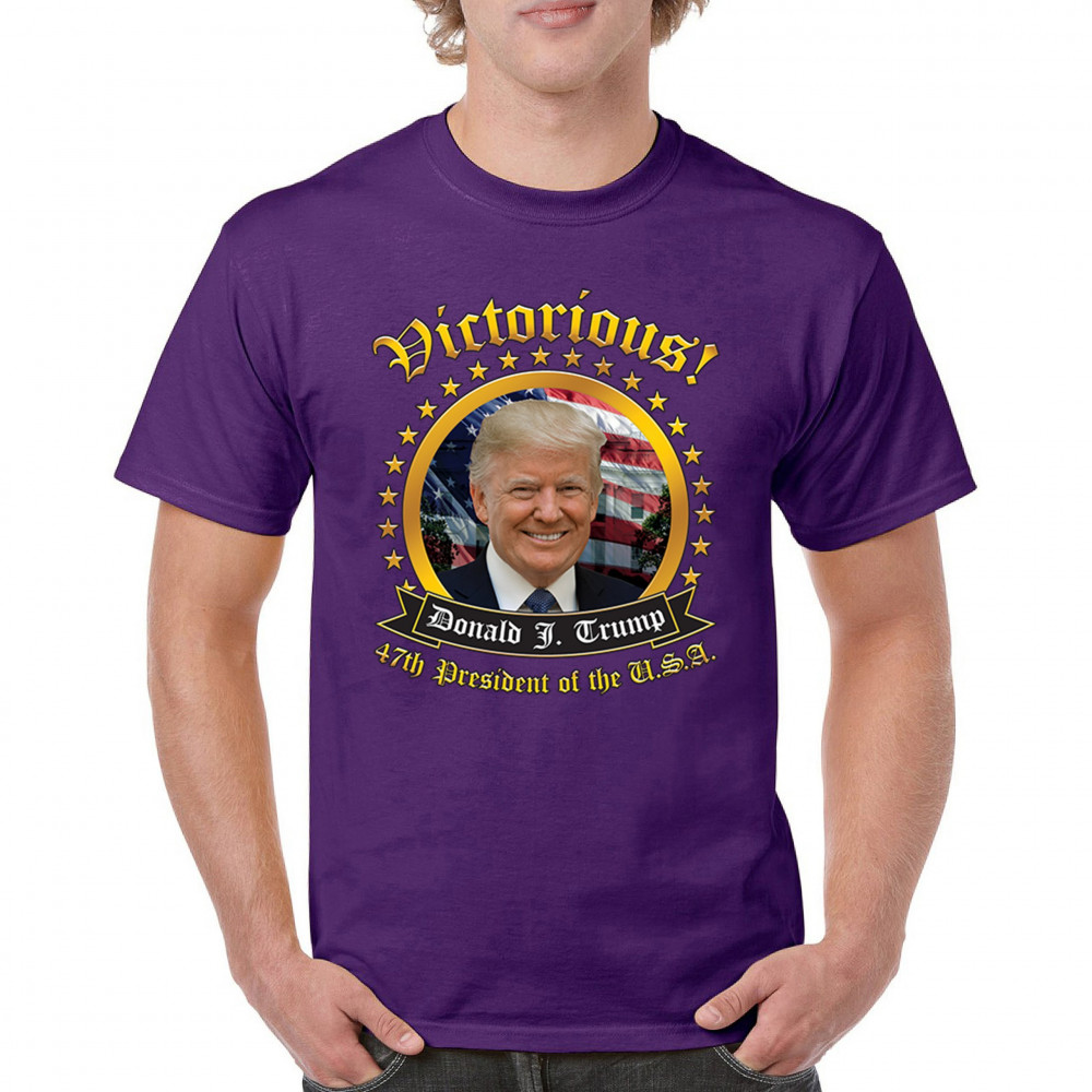 The "Victorious" design captures the spirit of Donald J. Trump’s victory as the 47th President, embodying the pride and patriotism of true American supporters. With elements of the American flag and an inspiring message, it’s a perfect symbol for Republicans, conservatives, and America First advocates. Celebrate the Red Wave and stand for a strong, united nation. Perfect for showing support at rallies, gatherings, or casual wear.