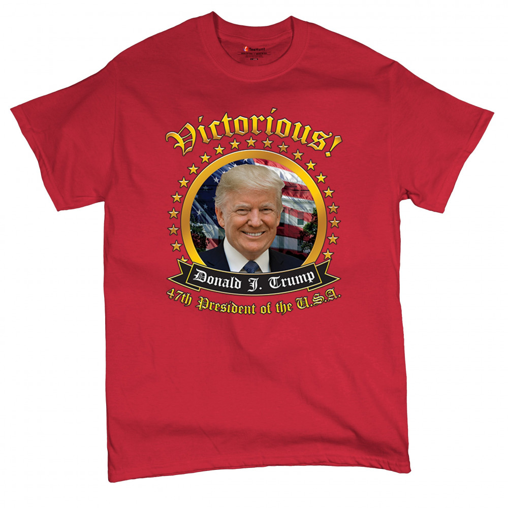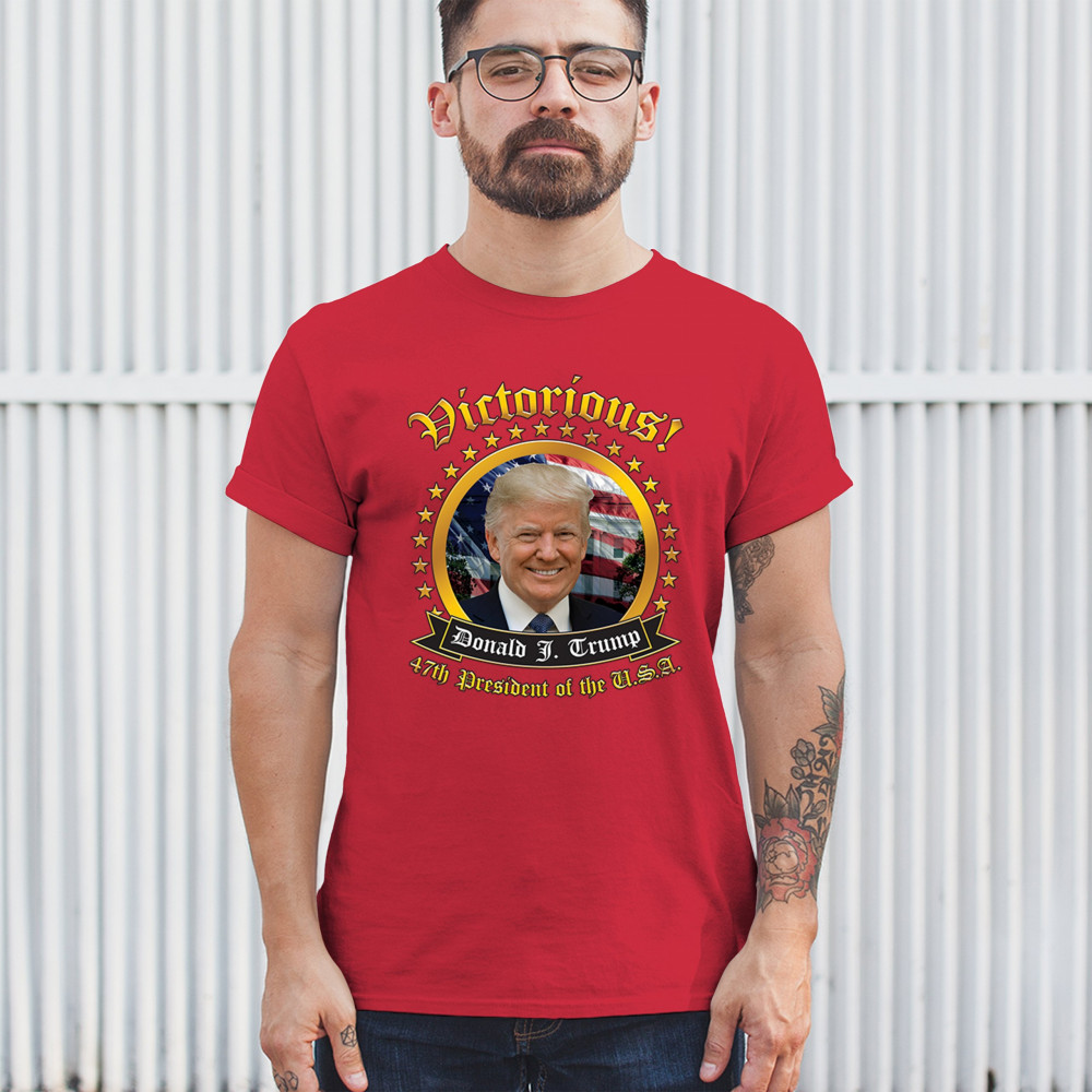 Showcase your support for Trump as the 47th President with this "Victorious" design. Perfect for patriots, America First advocates, and Red Wave supporters.