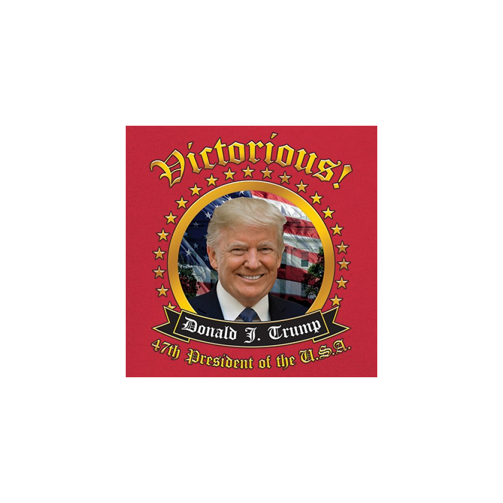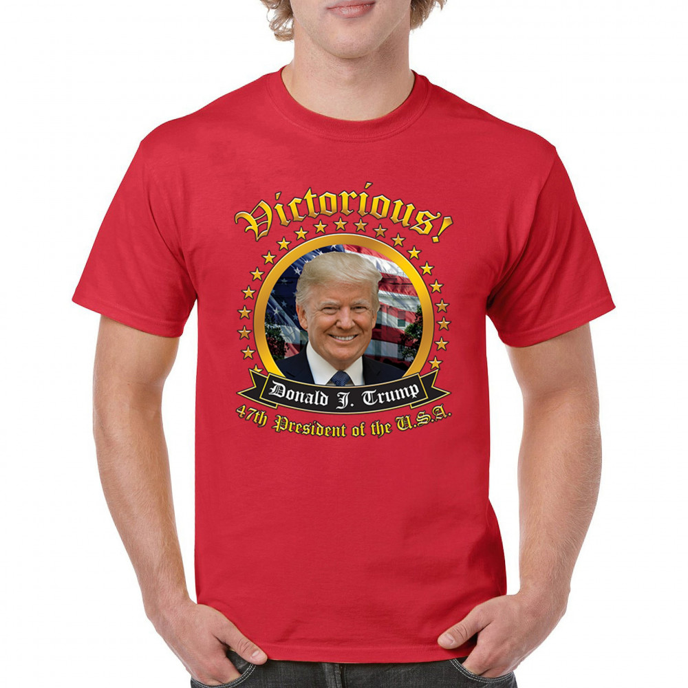 The "Victorious" design captures the spirit of Donald J. Trump’s victory as the 47th President, embodying the pride and patriotism of true American supporters. With elements of the American flag and an inspiring message, it’s a perfect symbol for Republicans, conservatives, and America First advocates. Celebrate the Red Wave and stand for a strong, united nation. Perfect for showing support at rallies, gatherings, or casual wear.