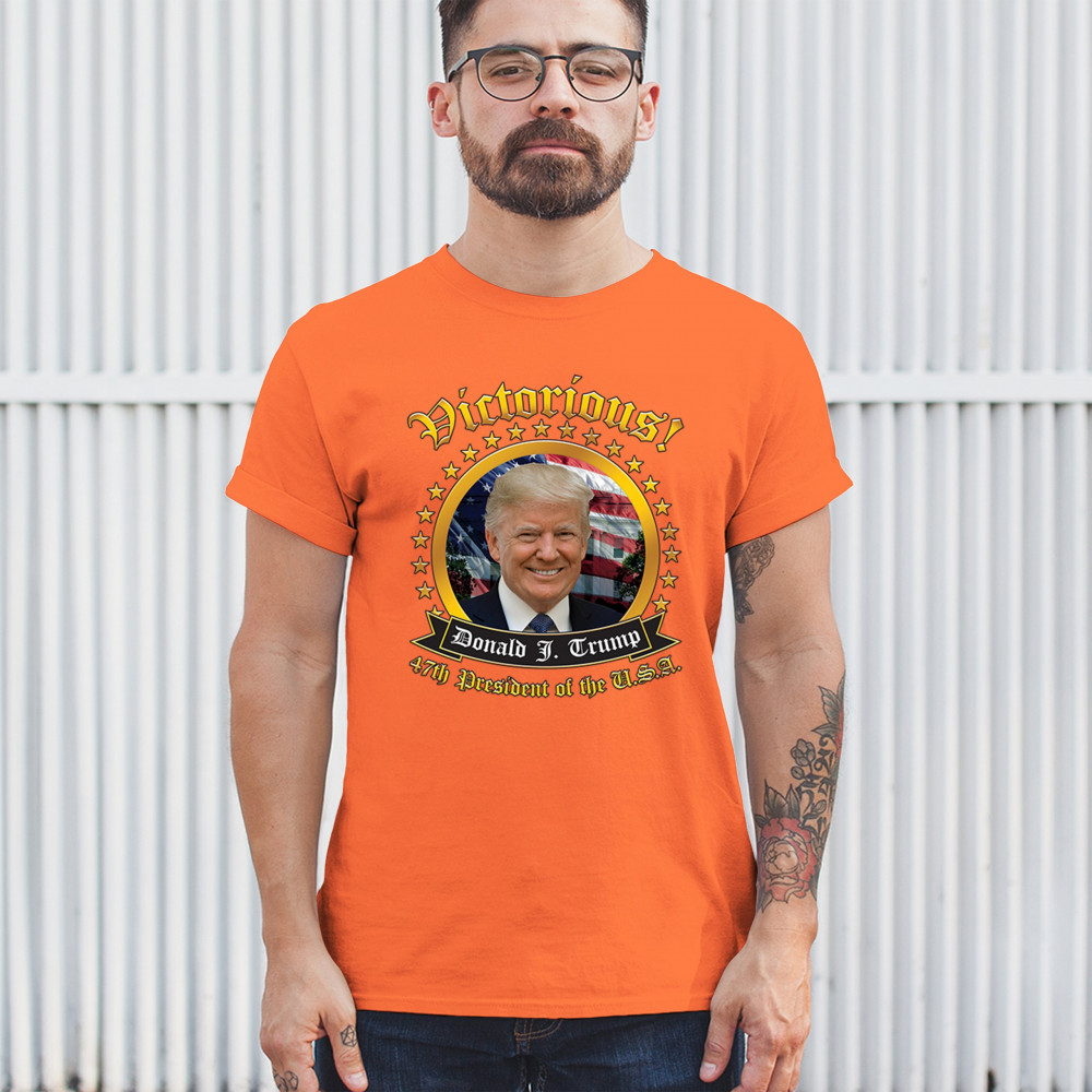 The "Victorious" design captures the spirit of Donald J. Trump’s victory as the 47th President, embodying the pride and patriotism of true American supporters. With elements of the American flag and an inspiring message, it’s a perfect symbol for Republicans, conservatives, and America First advocates. Celebrate the Red Wave and stand for a strong, united nation. Perfect for showing support at rallies, gatherings, or casual wear.