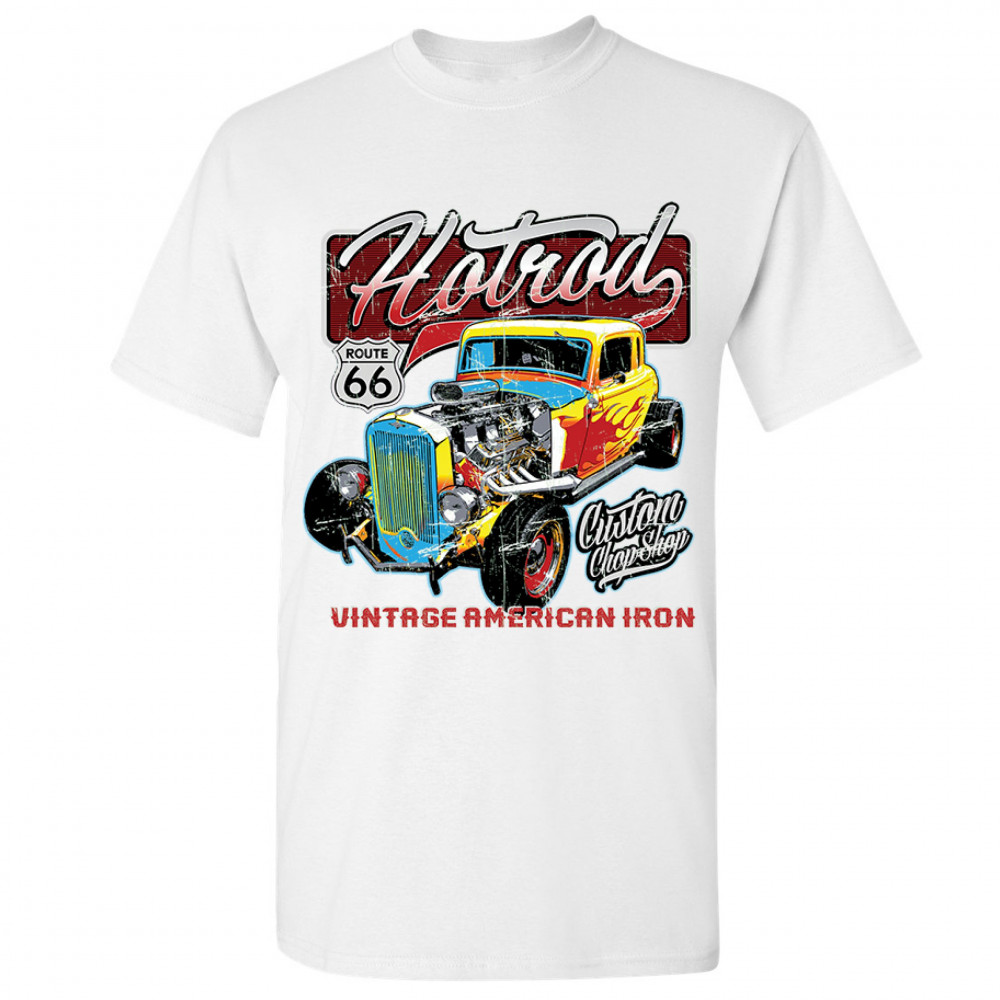 VINTAGE AMERICAN IRON t-shirt hot rod route 66 retro racing men's tee white