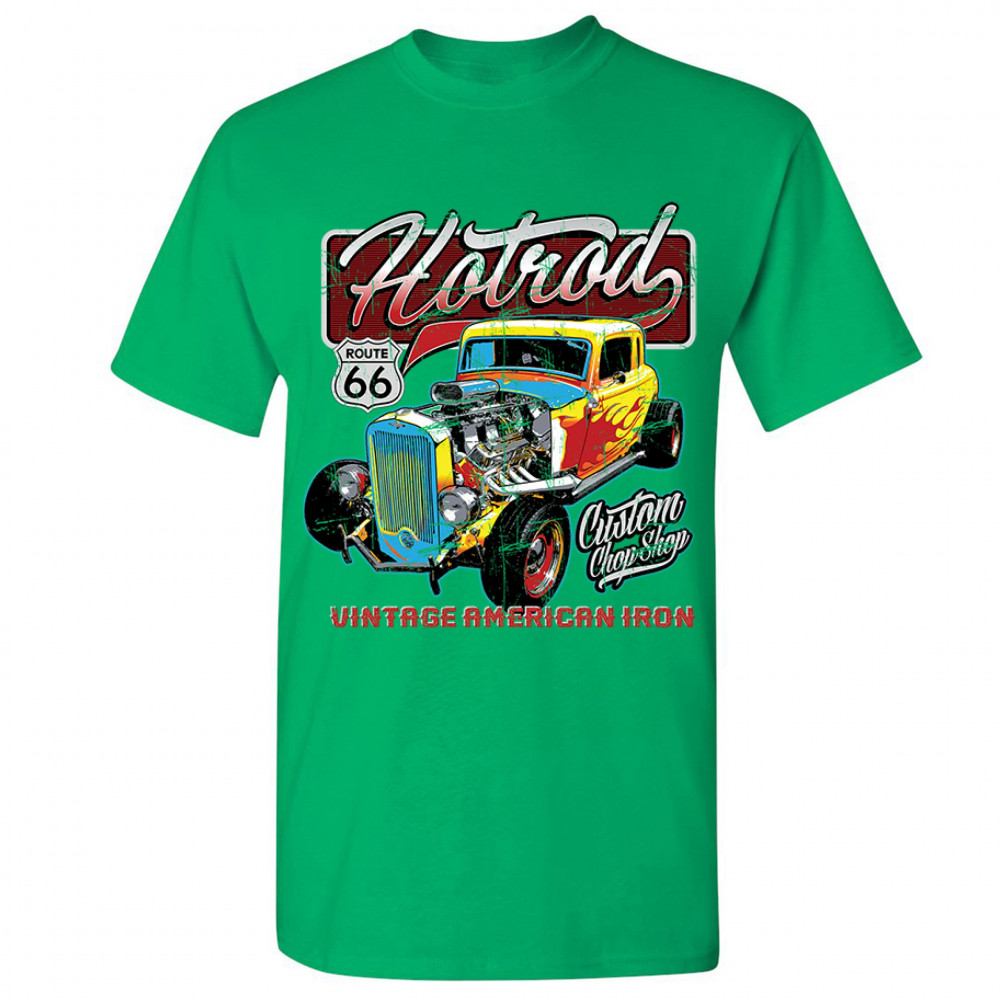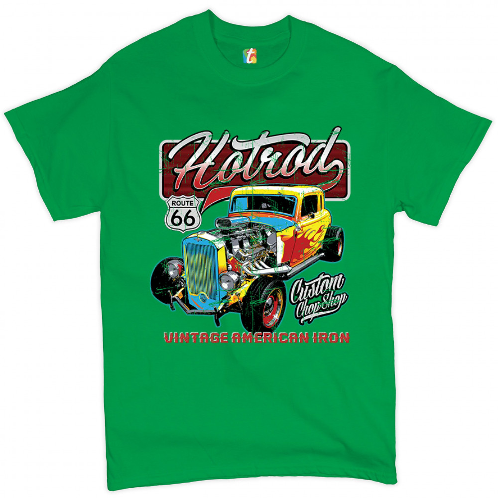 VINTAGE AMERICAN IRON t-shirt hot rod route 66 retro racing men's tee green