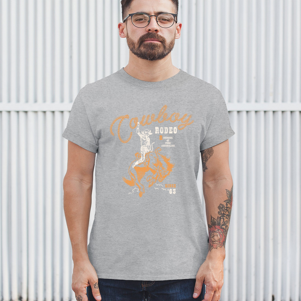 Cowboy bull riding design for rodeo fans and western lovers. Celebrates 8 seconds of adrenaline, cowboy grit, and rodeo tradition.