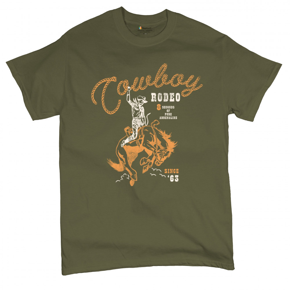 Cowboy bull riding design for rodeo fans and western lovers. Celebrates 8 seconds of adrenaline, cowboy grit, and rodeo tradition.
