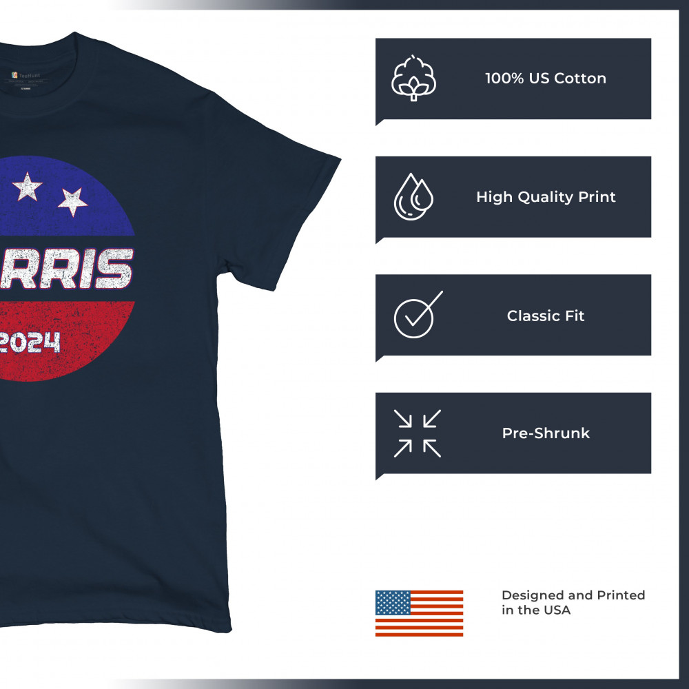 Embrace your political stance with this Kamala Harris 2024 design, crafted for supporters of the Democratic party and those who believe in a brighter, inclusive future. The design features the American flag and bold lettering, making it a perfect choice for rallies, political events, or casual wear. It underscores the historic significance of electing the first female president and represents a broad coalition of black Americans, Hispanic Americans, LGBTQ, and other minority groups. Stand out and show your unwavering support for Kamala Harris and her vision for America.