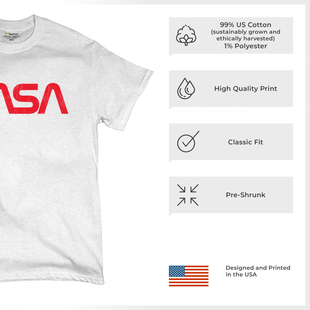 Vintage NASA worm logo shirt celebrates America’s cosmic journey, Apollo legacy, rocket launches, and the spirit of space exploration.