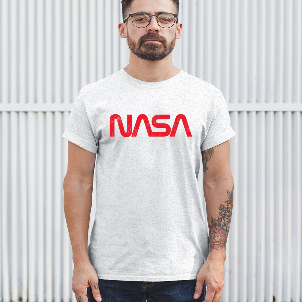 Celebrate the adventure of space travel with this vintage NASA worm logo shirt in striking red. Perfect for astronauts, rocket launch enthusiasts, and space exploration fans, it pays tribute to America’s journey from the Apollo program to future Mars missions. A cosmic emblem for anyone passionate about humanity’s place in the universe.