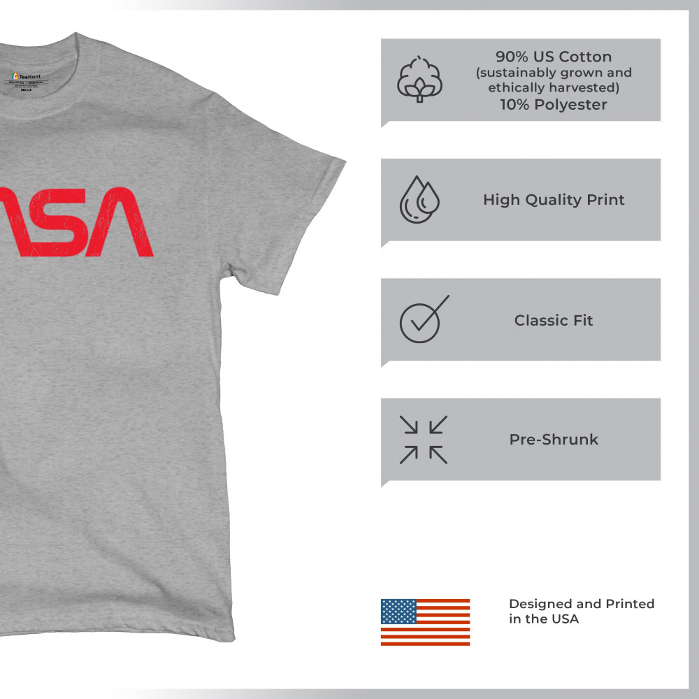 Vintage NASA worm logo shirt celebrates America’s cosmic journey, Apollo legacy, rocket launches, and the spirit of space exploration.