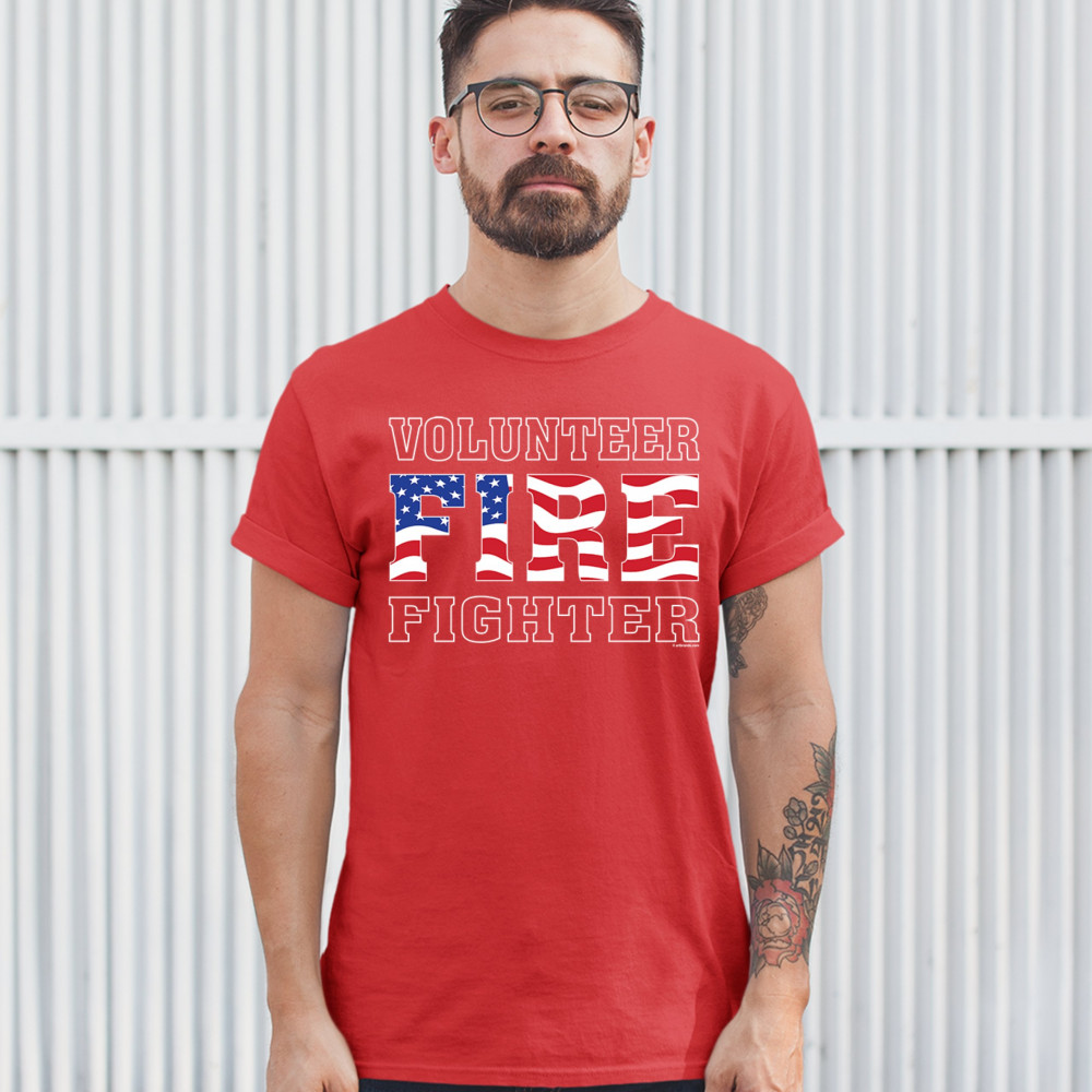 VOLUNTEER FIRE FIGHTER t-shirt fire and rescue courage patriotic men's tee red