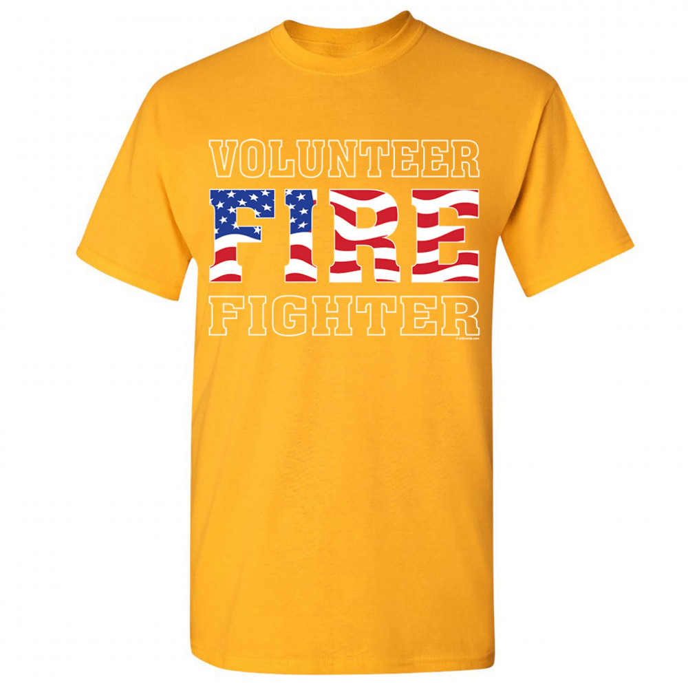 VOLUNTEER FIRE FIGHTER t-shirt fire and rescue courage patriotic men's tee yellow