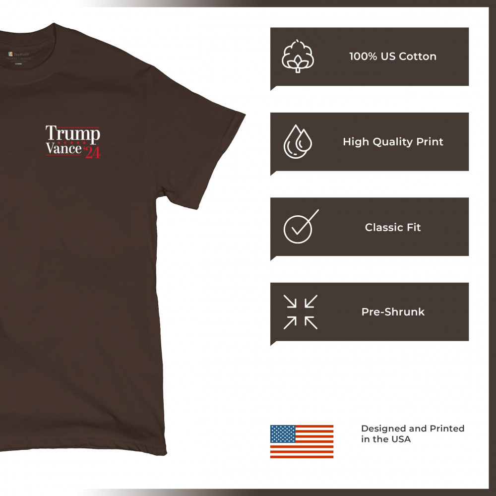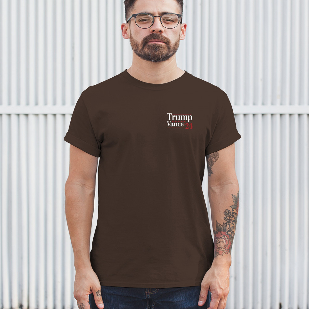 Support the unstoppable Trump and Vance 2024 campaign with this minimalist yet impactful t-shirt. Perfect for conservatives and Trump supporters, this shirt embodies the values of victory, patriotism, and faith in a better future. Whether you're attending a rally or making a statement in your daily life, wear this shirt with pride and confidence, knowing you're part of a movement that puts America first. Embrace your support and show where you stand.