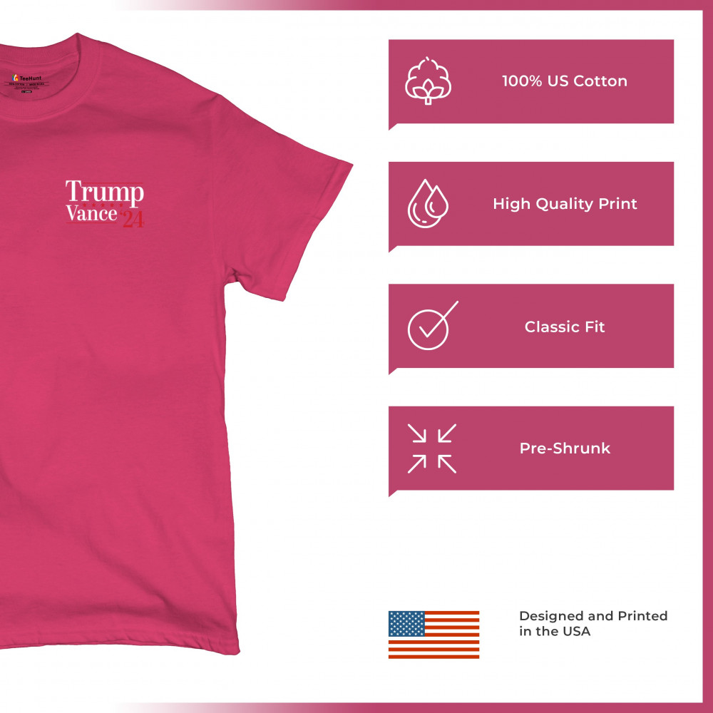 Join the Trump and Vance 2024 movement with this bold t-shirt. Perfect for rallies or daily wear, show your support for a stronger America!