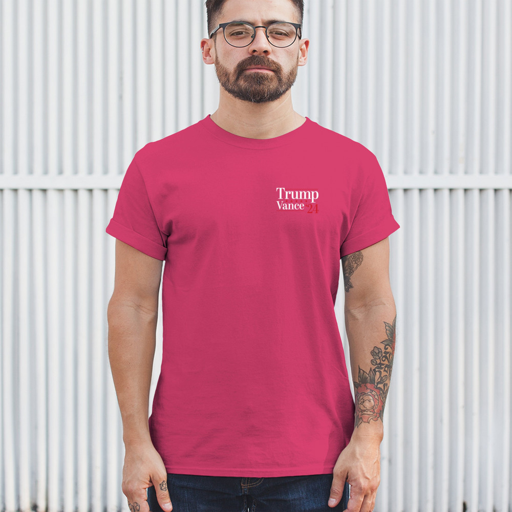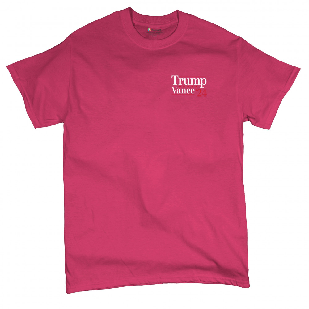 Support the unstoppable Trump and Vance 2024 campaign with this minimalist yet impactful t-shirt. Perfect for conservatives and Trump supporters, this shirt embodies the values of victory, patriotism, and faith in a better future. Whether you're attending a rally or making a statement in your daily life, wear this shirt with pride and confidence, knowing you're part of a movement that puts America first. Embrace your support and show where you stand.