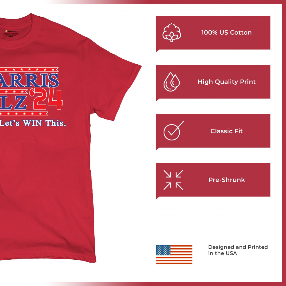 Express your support for Kamala Harris and Tim Walz in the 2024 election with this dynamic and patriotic design. Perfect for rally participants, dedicated supporters, and advocates of liberal values, this design captures the essence of the campaign. Highlighting America First, women's rights, and LGBTQ+ equality, it symbolizes the fight for victory and justice. Trust in government and join the rebelution against conservative agendas. Stand with Kamala and Walz for a brighter future. Let's win this together in 2024. Let's Win This.