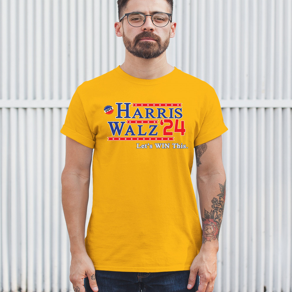 Express your support for Kamala Harris and Tim Walz in the 2024 election with this dynamic and patriotic design. Perfect for rally participants, dedicated supporters, and advocates of liberal values, this design captures the essence of the campaign. Highlighting America First, women's rights, and LGBTQ+ equality, it symbolizes the fight for victory and justice. Trust in government and join the rebelution against conservative agendas. Stand with Kamala and Walz for a brighter future. Let's win this together in 2024. Let's Win This.