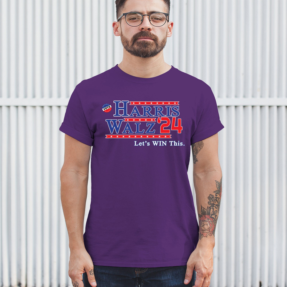 Express your support for Kamala Harris and Tim Walz in the 2024 election with this dynamic and patriotic design. Perfect for rally participants, dedicated supporters, and advocates of liberal values, this design captures the essence of the campaign. Highlighting America First, women's rights, and LGBTQ+ equality, it symbolizes the fight for victory and justice. Trust in government and join the rebelution against conservative agendas. Stand with Kamala and Walz for a brighter future. Let's win this together in 2024. Let's Win This.