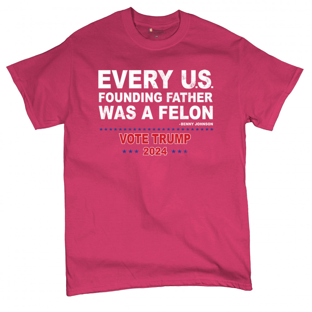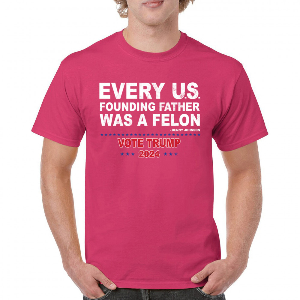 Show your support for Trump 2024 with a bold design quoting "Every U.S. founding father was a felon." Stand against political attacks and support an America-first vision.