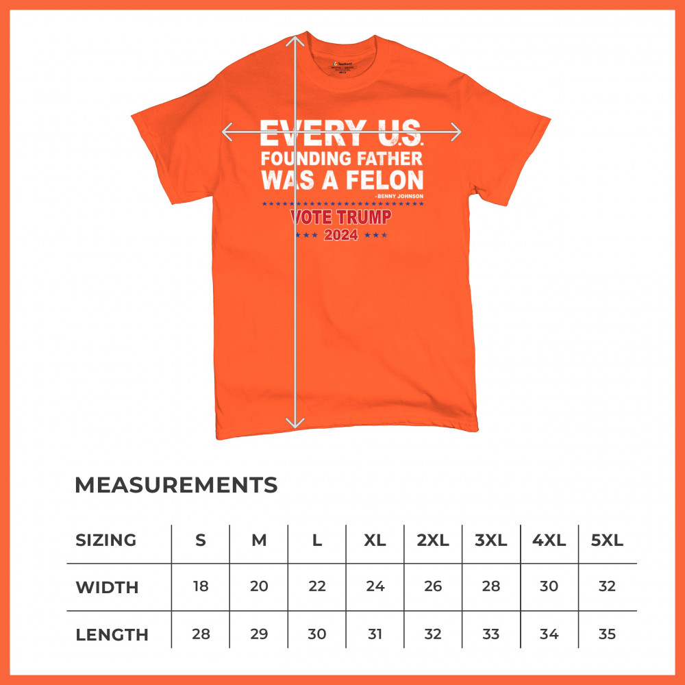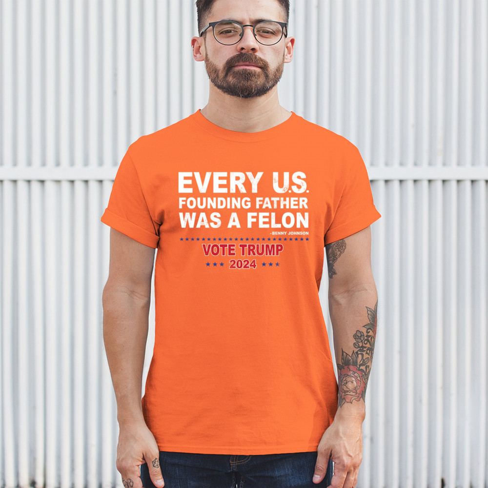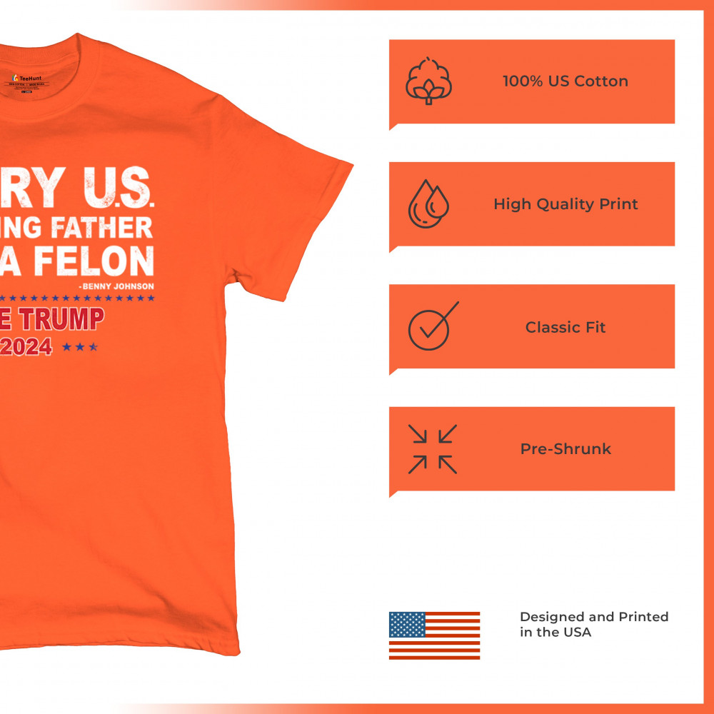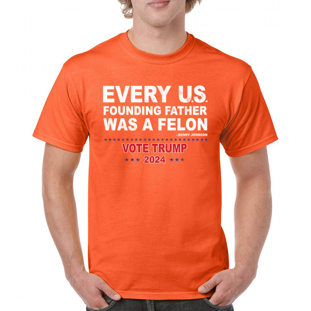 Show your support for Trump 2024 with a bold design quoting "Every U.S. founding father was a felon." Stand against political attacks and support an America-first vision.