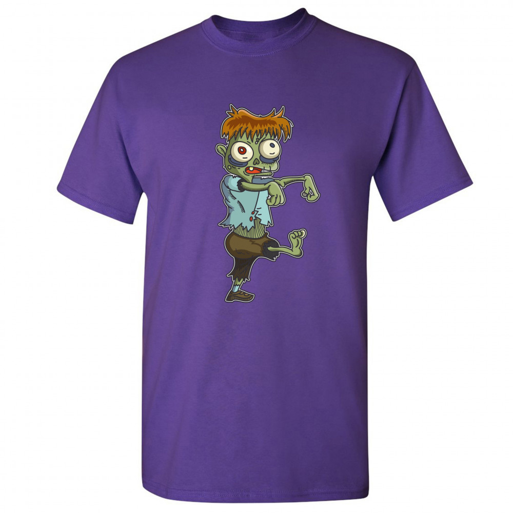 A print featuring a zombie, walking in a stereotypical movie fashion with the arms extended forward. The zombie has messy ginger hair and eyes popping out but he looks rather funny and non-threatening. A great choice for a person who is into horror movies