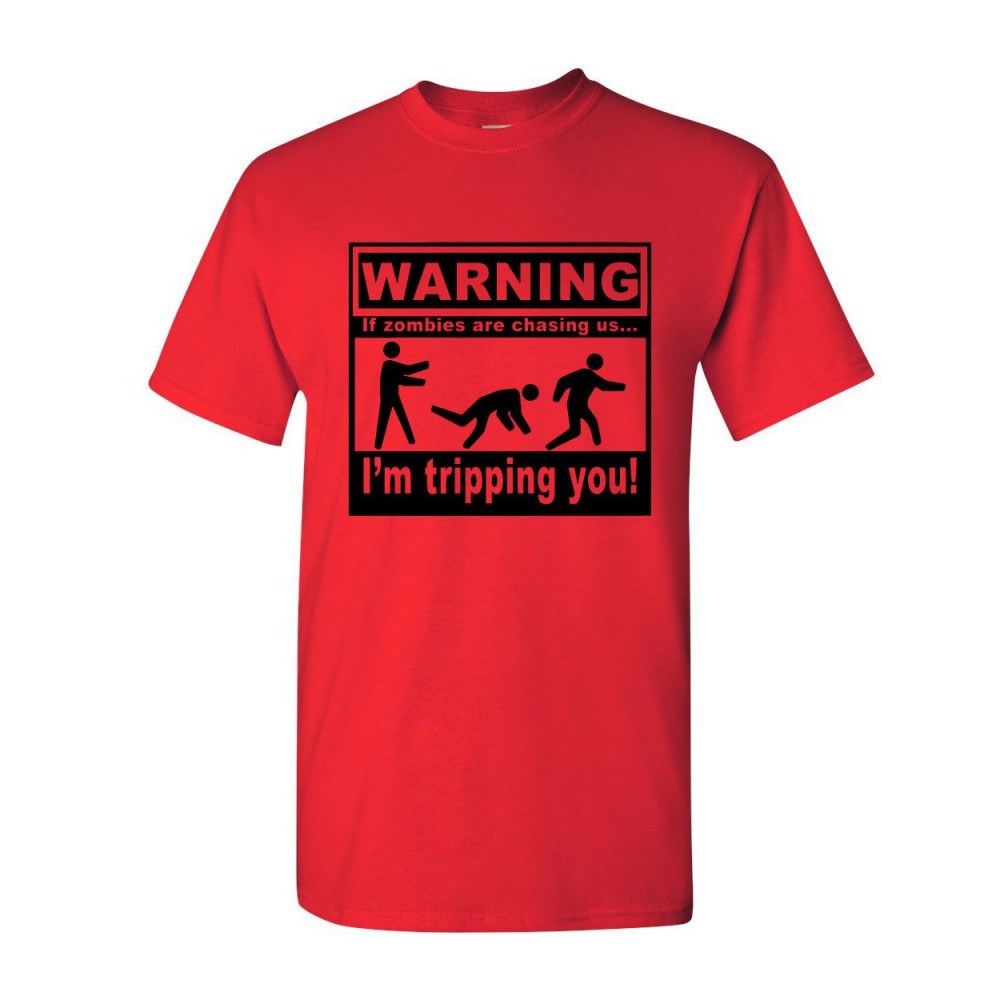 IF ZOMBIES ARE CHASING US I'M TRIPPING YOU t-shirt zombie apocalypse red