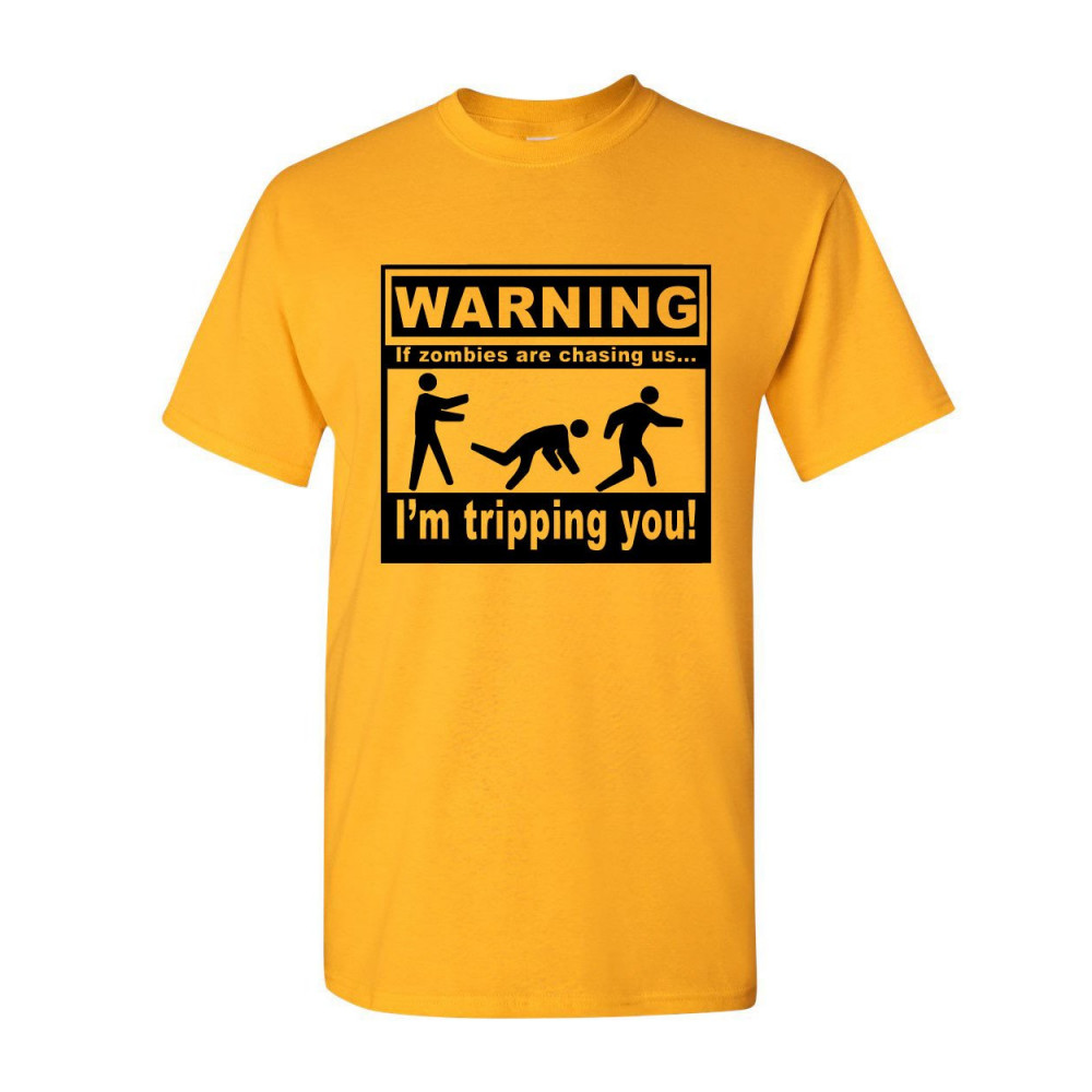 IF ZOMBIES ARE CHASING US I'M TRIPPING YOU t-shirt zombie apocalypse yellow
