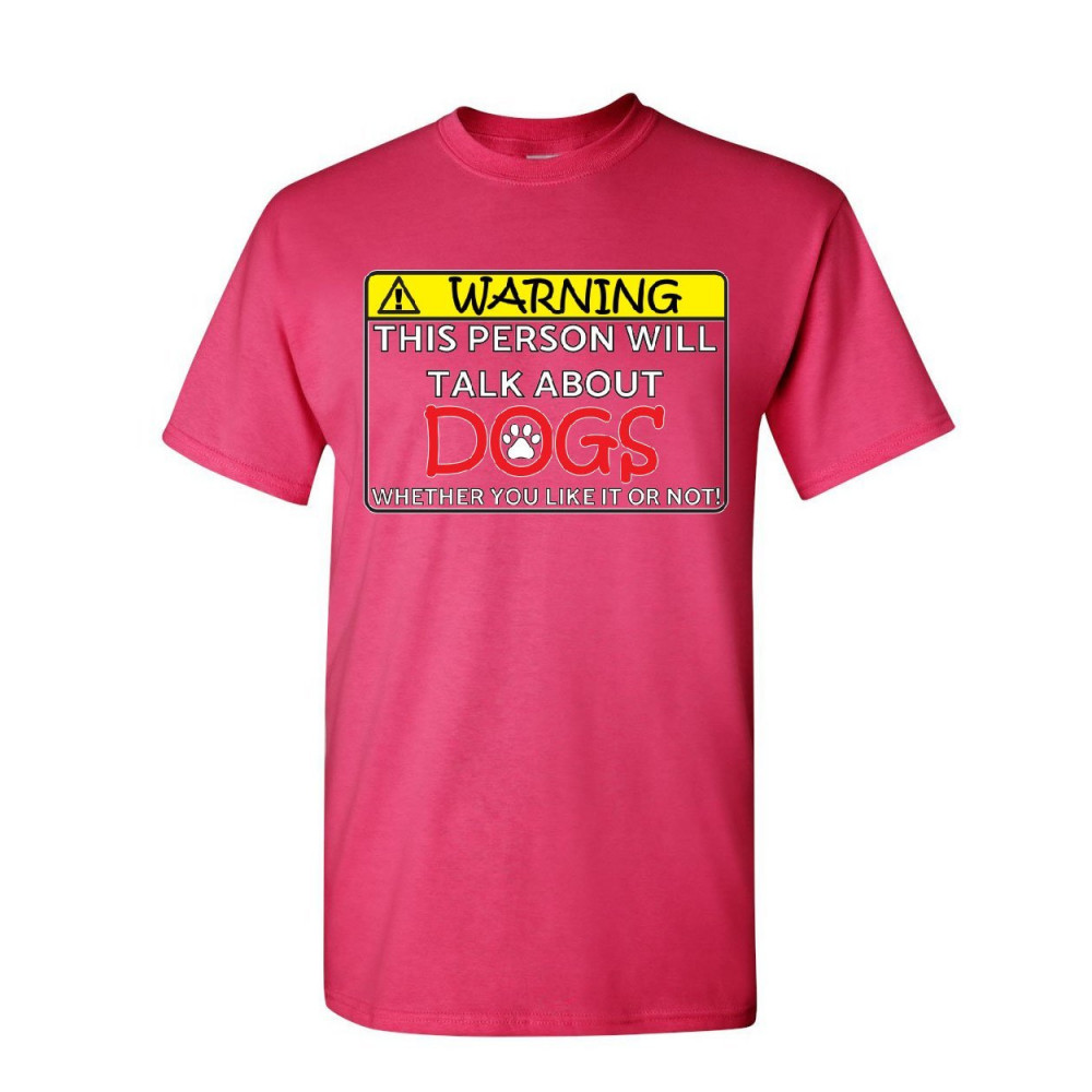 WARNING! THIS PERSON WILL TALK ABOUT DOGS t-shirt puppy pet paw mens tee shirt hot pink