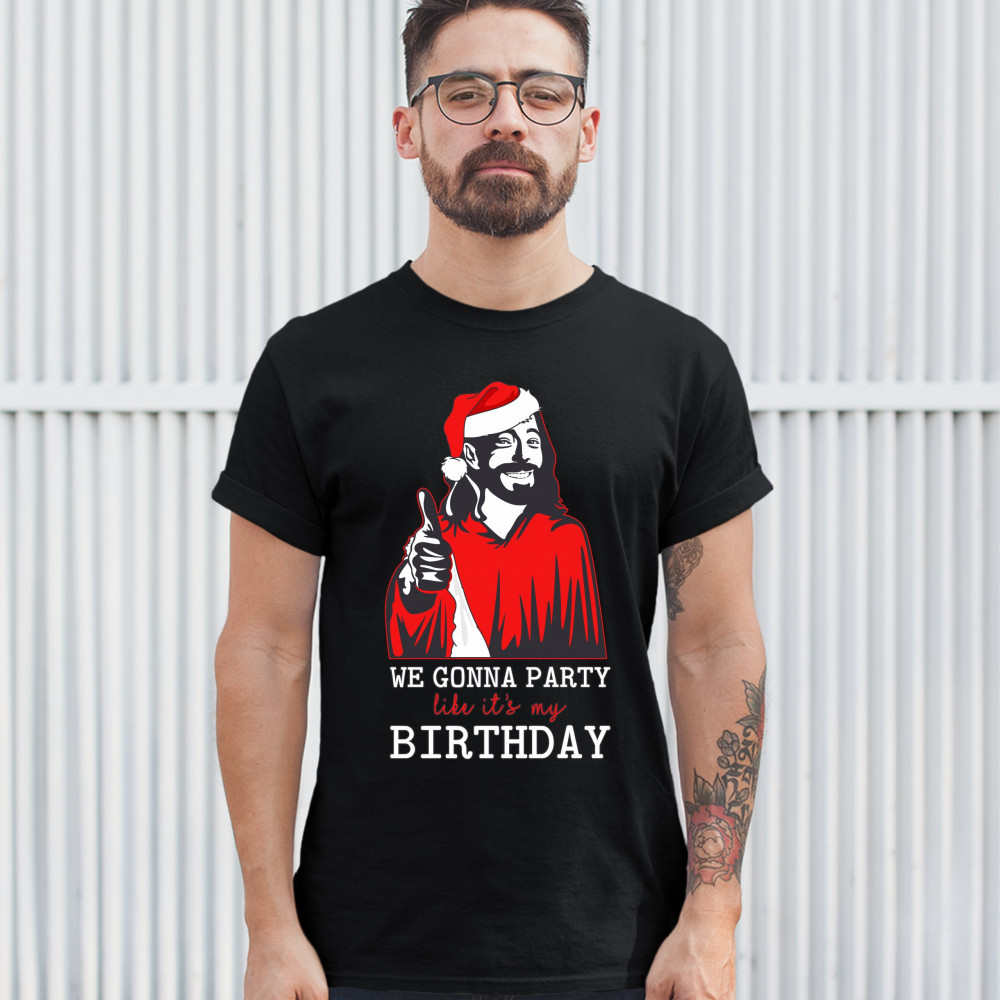 WE GONNA PARTY LIKE IT'S MY BIRTHDAY t-shirt jesus christ xmas men's tee black