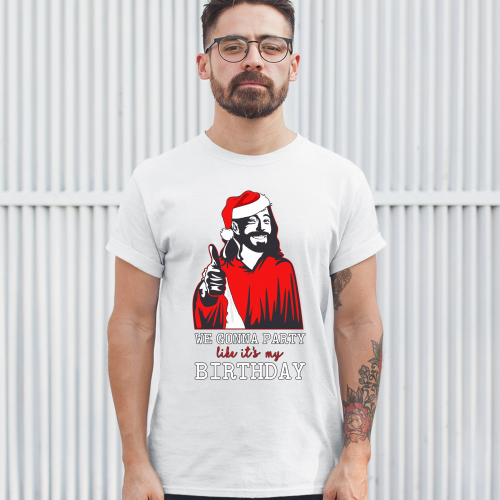 WE GONNA PARTY LIKE IT'S MY BIRTHDAY t-shirt jesus christ xmas men's tee white