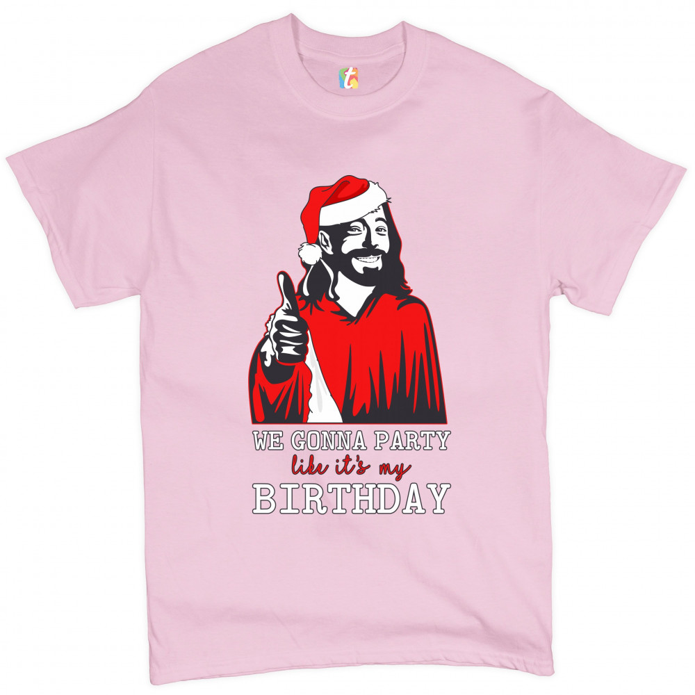 WE GONNA PARTY LIKE IT'S MY BIRTHDAY t-shirt jesus christ xmas men's tee light pink