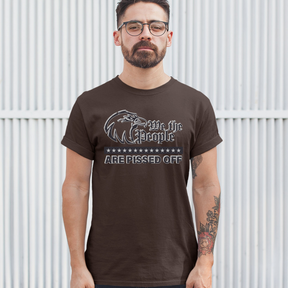WE THE PEOPLE ARE PISSED OFF t-shirt bald eagle fight for democracy men's tee brown