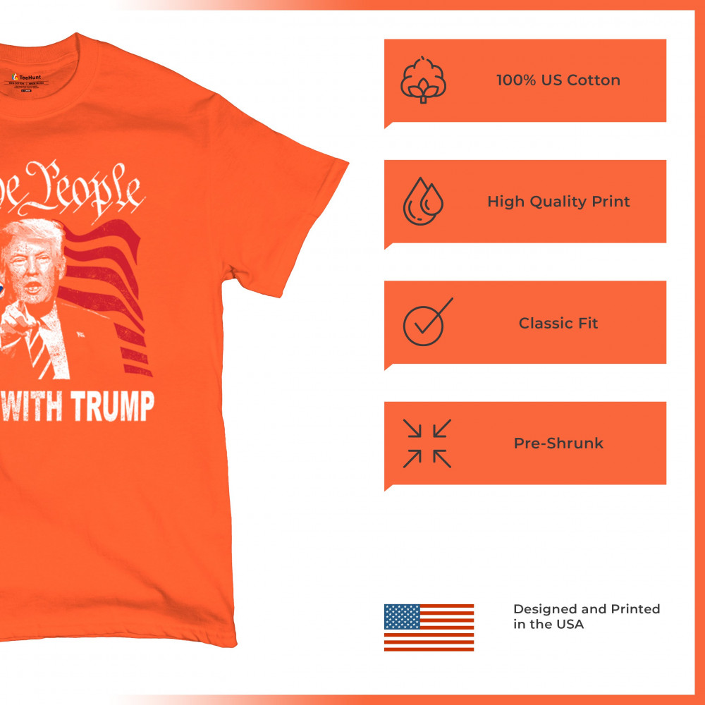 Express your allegiance to President Trump with the "We the People Stand with Trump" design. This compelling design showcases a determined Trump pointing forward, set against the iconic American flag, symbolizing strength and patriotism. It's a perfect choice for rallies and gatherings, proudly representing conservative values and the fight against leftist agendas. Stand up for America's future and make a statement with this design, supporting the principles of freedom and democracy. An essential addition for any Trump supporter dedicated to the conservative cause.