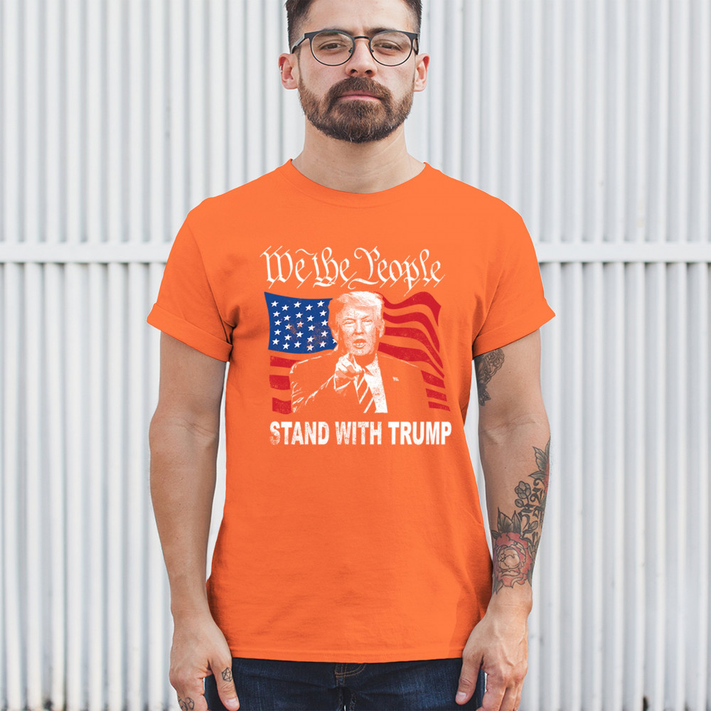 Show your support for Trump with the "We the People Stand with Trump" design. A powerful symbol of patriotism, featuring Trump and the American flag. Stand up for conservative values.
