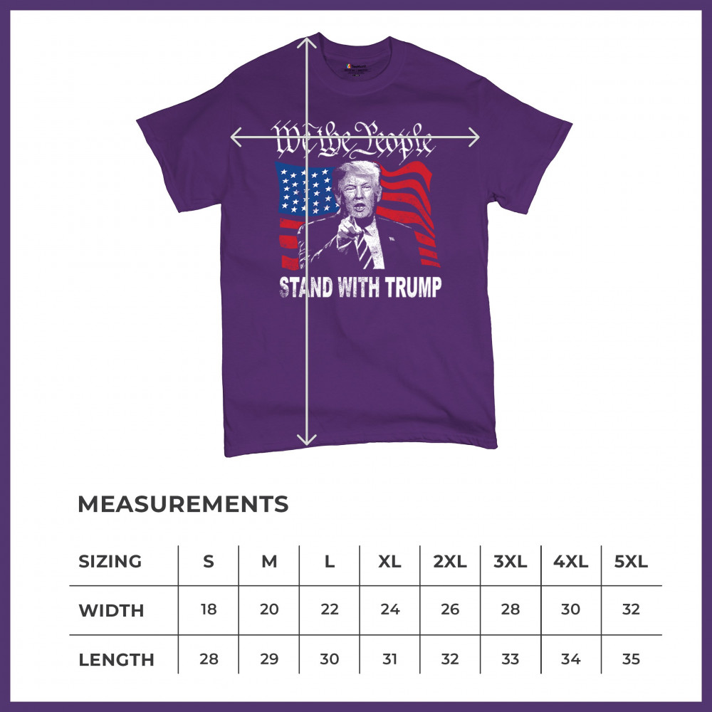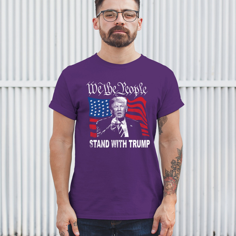Show your support for Trump with the "We the People Stand with Trump" design. A powerful symbol of patriotism, featuring Trump and the American flag. Stand up for conservative values.