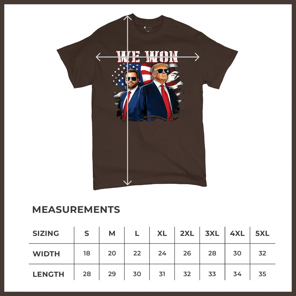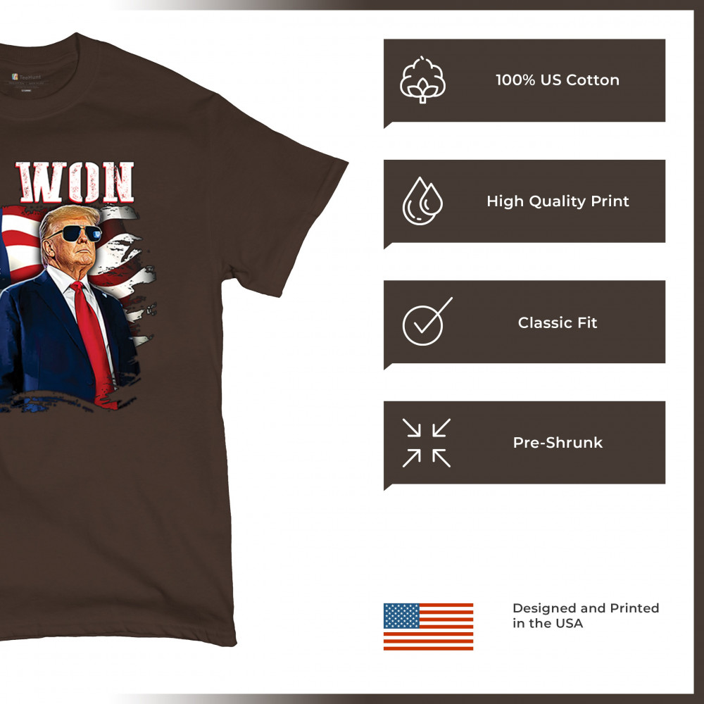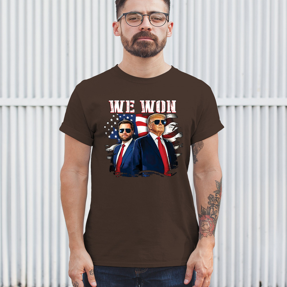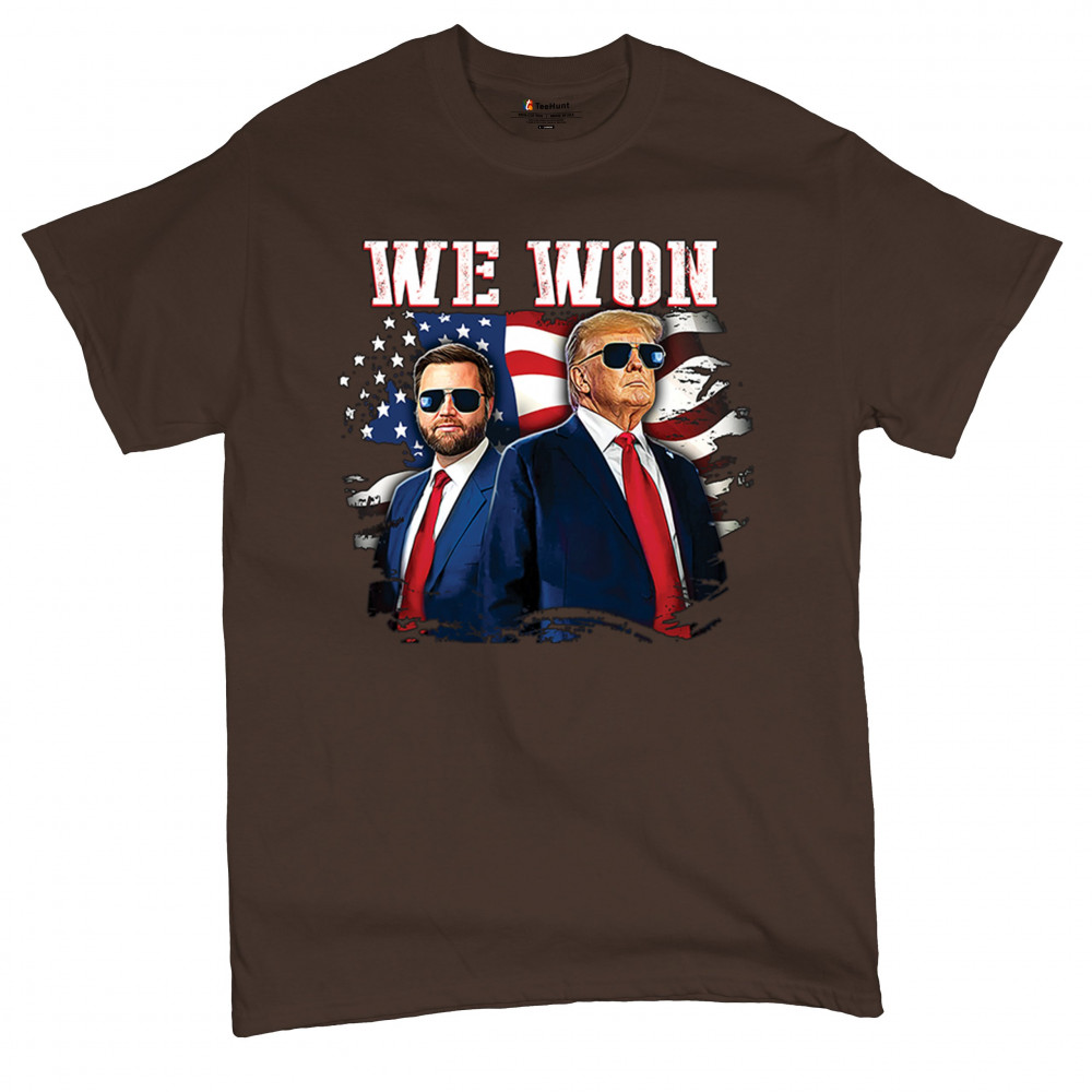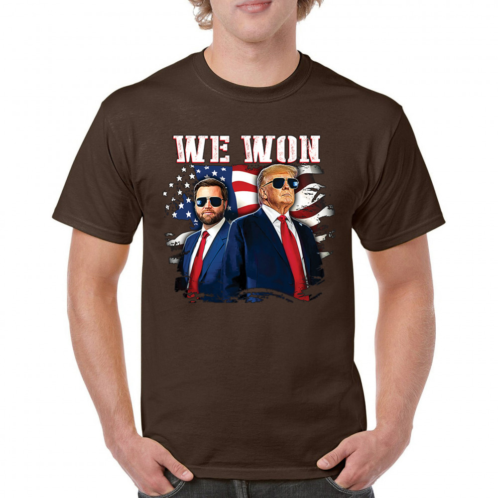 Celebrate Republican victory with this bold "We Won" design featuring Trump and patriotic flair—perfect for rallies, events, and patriotic pride.