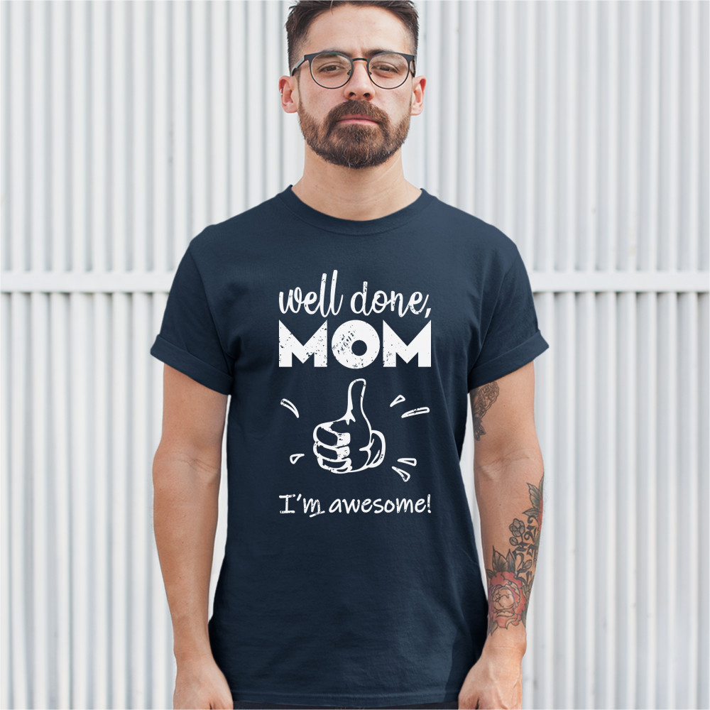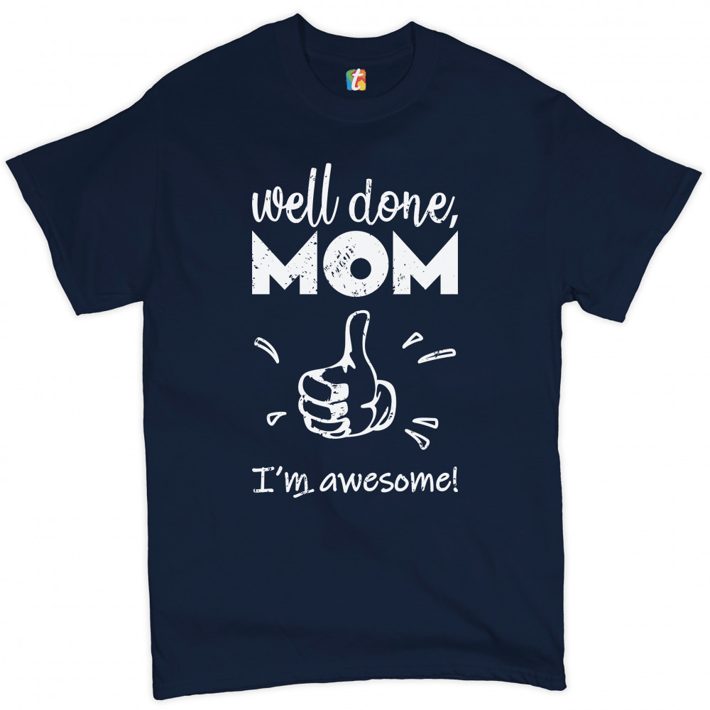 WELL DONE MOM I'M AWESOME t-shirt mother's day i love you mom mommy men's tee navy blue