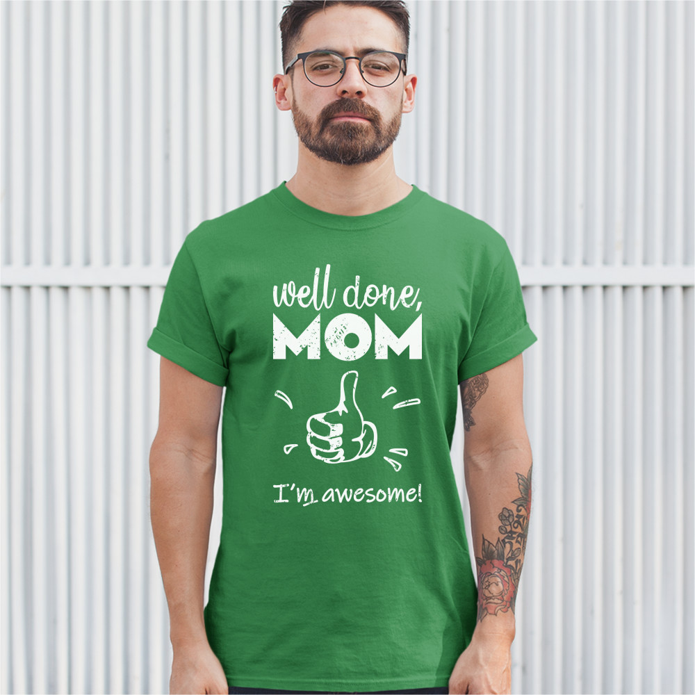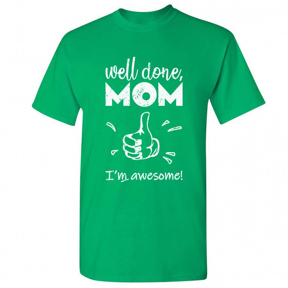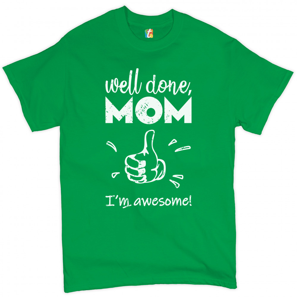 WELL DONE MOM I'M AWESOME t-shirt mother's day i love you mom mommy men's tee green
